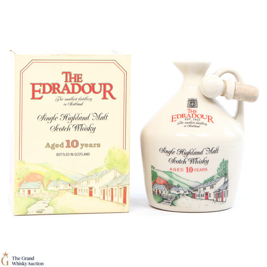 This 10-Year-Old Edradour single Highland malt is presented in an attractive ceramic decanter.