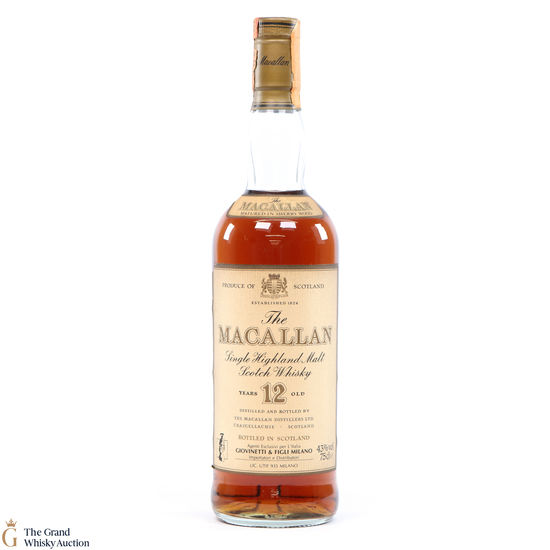 An early 1990s bottle of Macallan 12-year-old sherry wood, produced for the Italian market, imported by Giovinetti and Figli Milano.