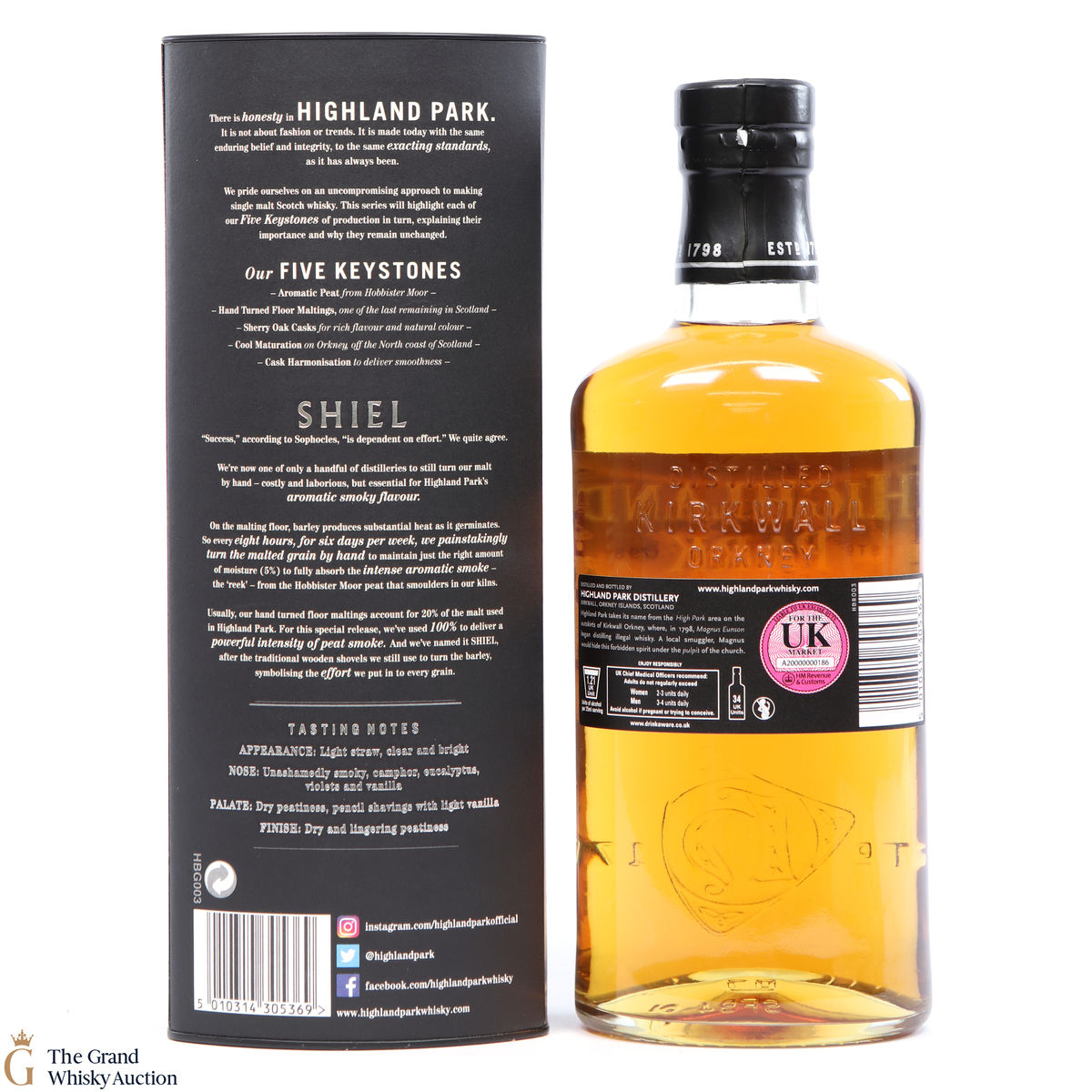 Due to the various ages of bottles and their seals, the condition of liquid is at the buyer's discretion and no claim can be lodged against failure/leakage in transit. Loss and breakage cover is available at 3% of the hammer price as standard. If the lot is not insured, no claim can be lodged against the courier or The Grand Whisky Auction for breakage or loss in transit.