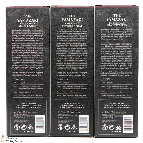 This lot includes 3 x Yamazaki 12-Year-Old 70cl bottlings.