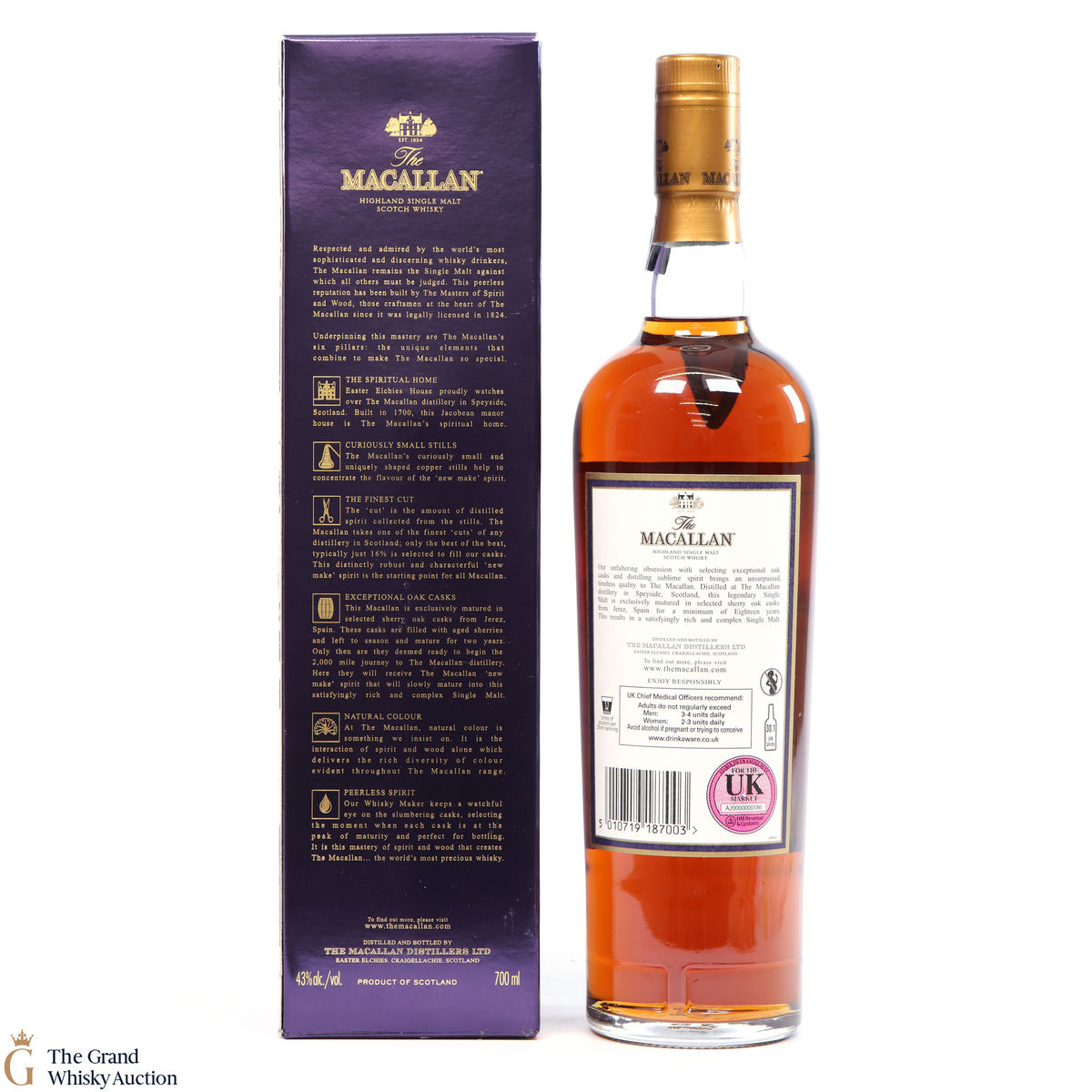 Due to the various ages of bottles and their seals, the condition of liquid is at the buyer's discretion and no claim can be lodged against failure/leakage in transit. Loss and breakage cover is available at 3% of the hammer price as standard. If the lot is not insured, no claim can be lodged against the courier or The Grand Whisky Auction for breakage or loss in transit.