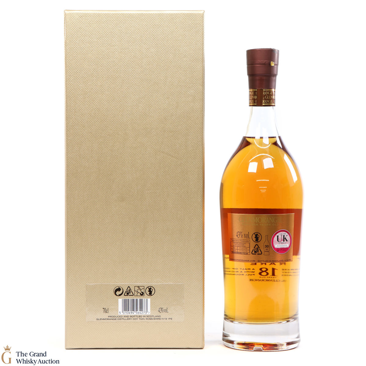 This bottle is an 18 year old Extremely Rare, Highland single malt produced by Glenmorangie. It has been perfected by the sixteen men of Tain who have specially aged this bottle for 18 years in superior oak casks and a period in Oloroso Sherry casks.