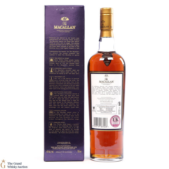 This annual release of The Macallan's popular 18 Year Old Sherry Oak is matured exclusively in sherry seasoned casks, built from both Spanish and American oak, providing a beautifully dark flavour with rich aromas.