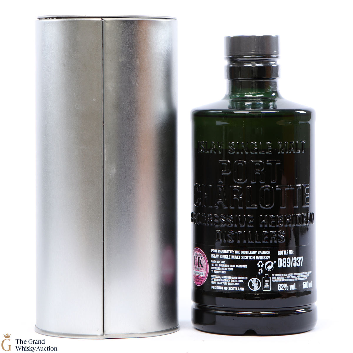 From Bruichladdich, this Port Charlotte Valinch single cask is an 11 year-old distilled in Islay in 2007, matured in 1st fill bourbon barrel #1410. This is a distillery exclusive release of 337 bottles at 62% ABV. This is a 50cl bottling.