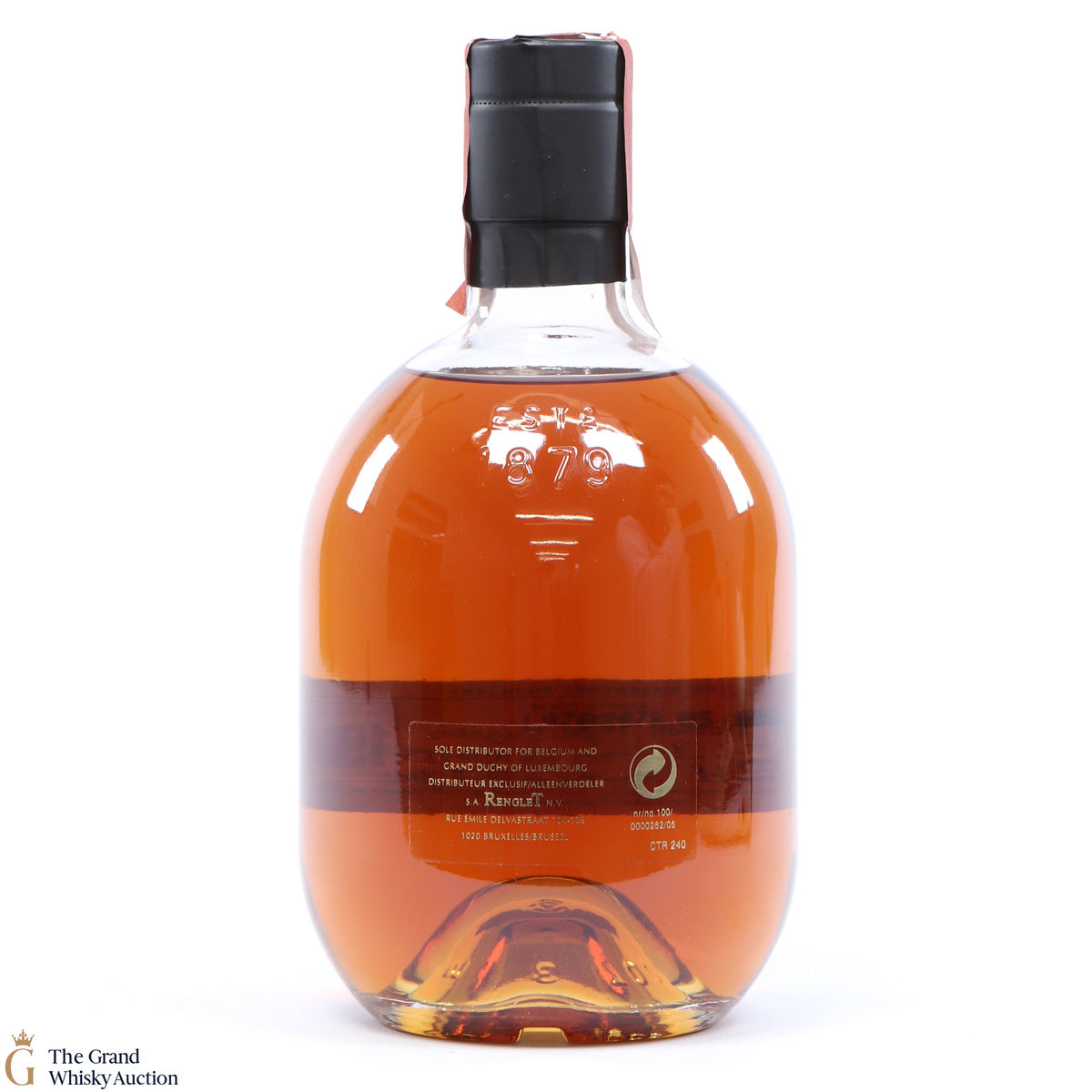 Due to the various ages of bottles and their seals, the condition of liquid is at the buyer's discretion and no claim can be lodged against failure/leakage in transit. Loss and breakage cover is available at 3% of the hammer price as standard. If the lot is not insured, no claim can be lodged against the courier or The Grand Whisky Auction for breakage or loss in transit.