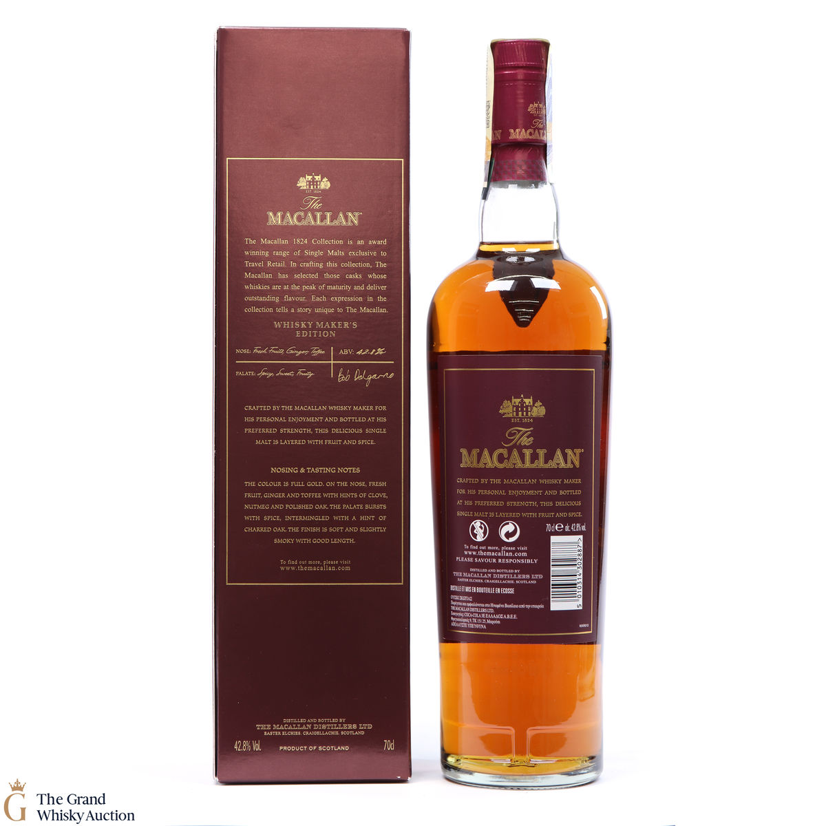 Released for the travel retail market, this single malt is part of The Macallan Whisky Maker's Edition Classic Travel Range. It was crafted by Bob Dalgarno, Macallan's distillery manager, using whisky drawn from a combination of Sherry and bourbon casks. It is bottled at his preferred strength of 42.8%.