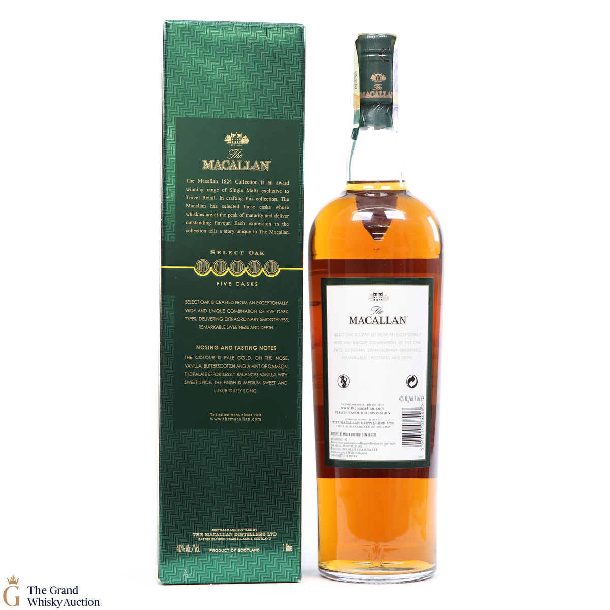 The Macallan Select Oak is crafted from a broad and unique selection of five casks which deliver a great smoothness, sweetness and depth. It is a lighter style of Macallan with sweet notes of butterscotch and vanilla.