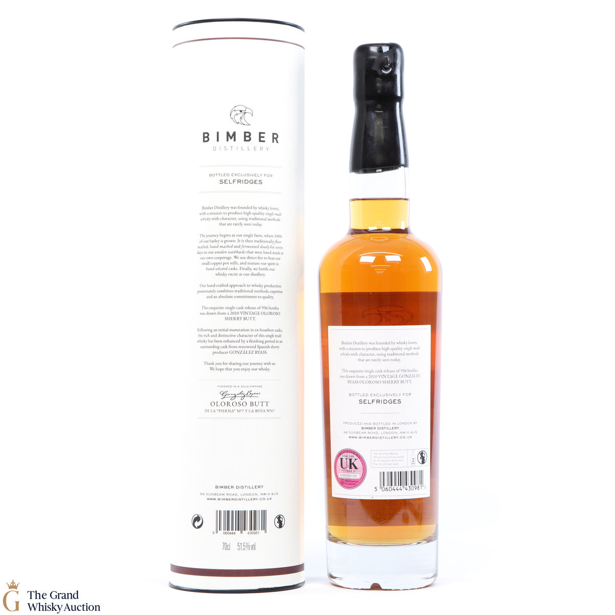 An exclusive partnership between the London distillery and department store Selfridges. This Bimber was made from single farm barley (which was malted at Westminster Maltings) and matured in four 1st fill American Oak Ex-bourbon casks. It was then finished in a single Oloroso sherry butt from hugely renowned Spanish sherry producer González Byass. Bottled in June 2020 at 51.5% ABV.
