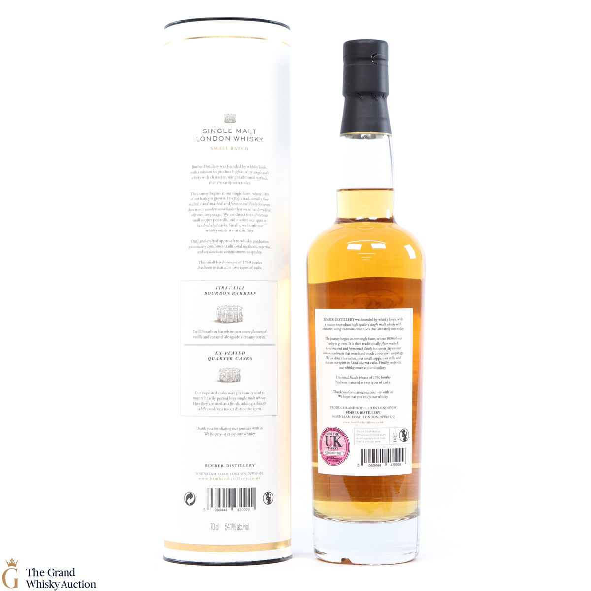 One of only 1750 bottles in the Bimber Peated Cask Batch 1 Small Batch release. It was firstly matured in 1st fill bourbon barrels then finished in casks that previously held Ex-peated Quarter Casks to finish.