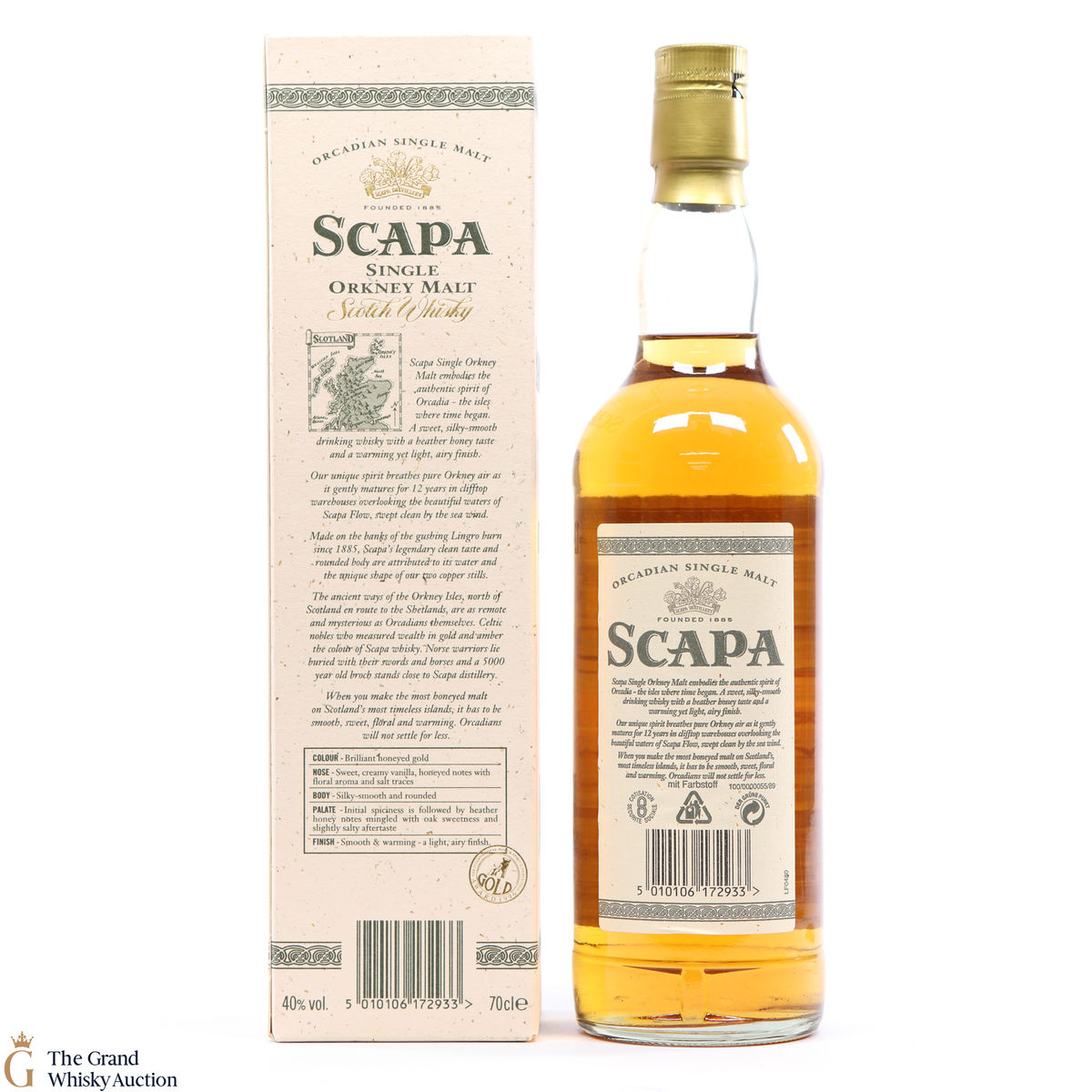 A long discontinued 12 Year Old from the Scapa Distillery in Orkney. It was matured for 12 years in clifftop warehouses overlooking the beautiful waters of the Scapa Flow.