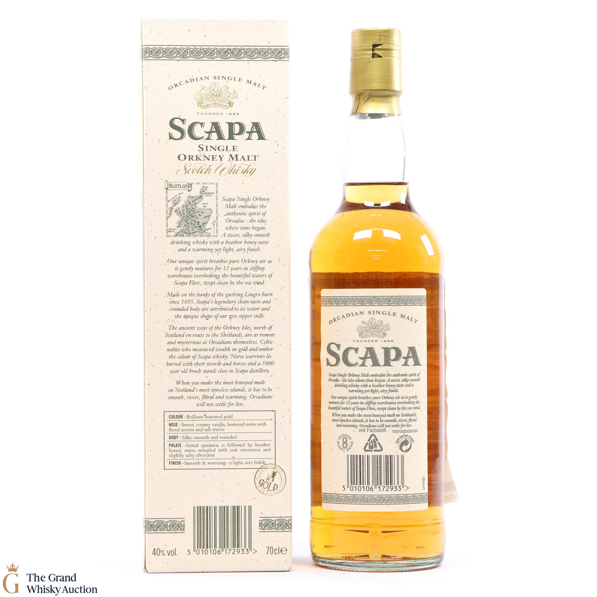 A long discontinued 12 Year Old from the Scapa Distillery in Orkney. It was matured for 12 years in clifftop warehouses overlooking the beautiful waters of the Scapa Flow.