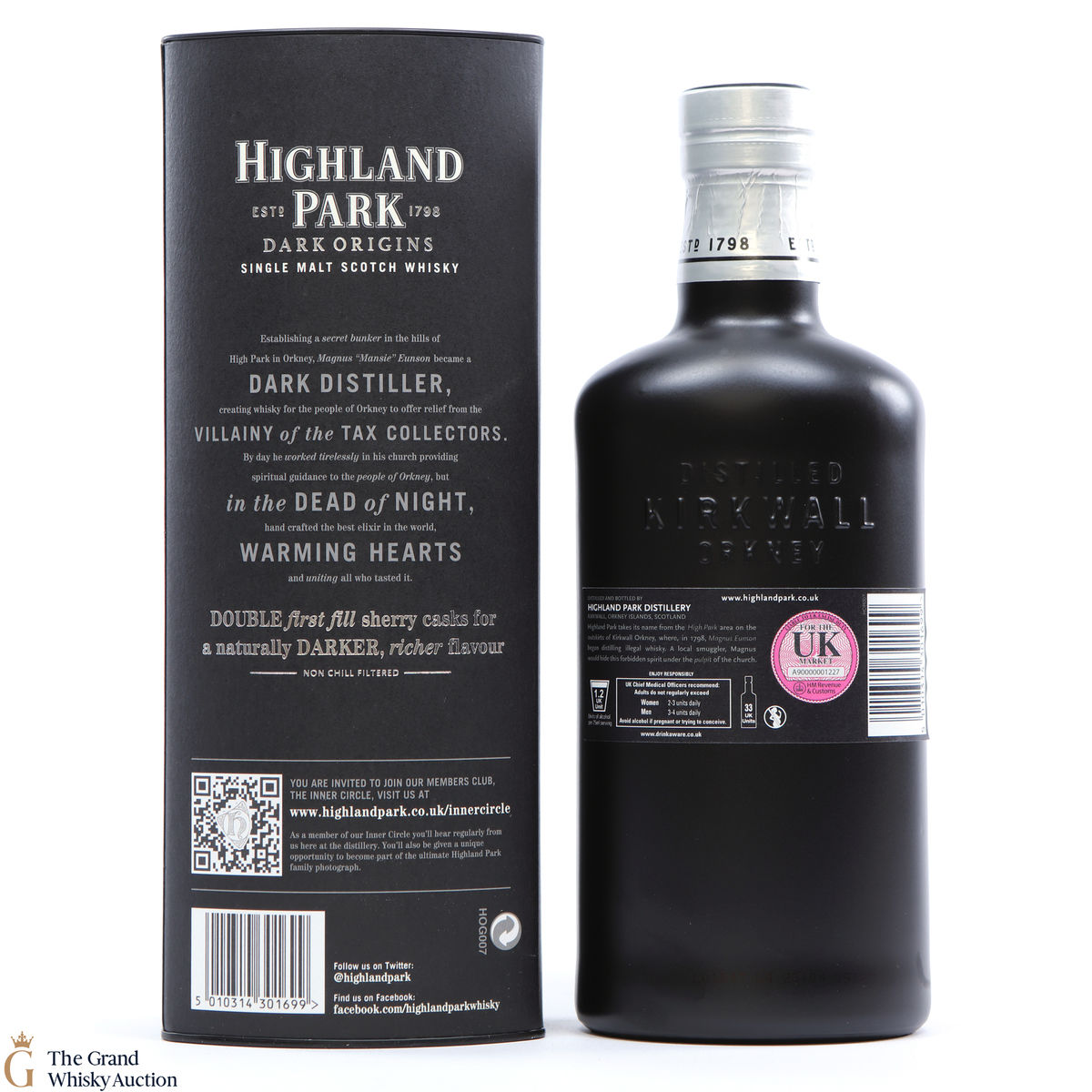 Highland Park Dark Origins is core bottling that celebrates the early days of Magnus Eunson's illicit distilling on Orkney, back before the distillery was even founded in 1798. Magnus worked as a butcher and church official by day, but by night he was a legendary whisky smuggler and distiller outwitting the exciseman.