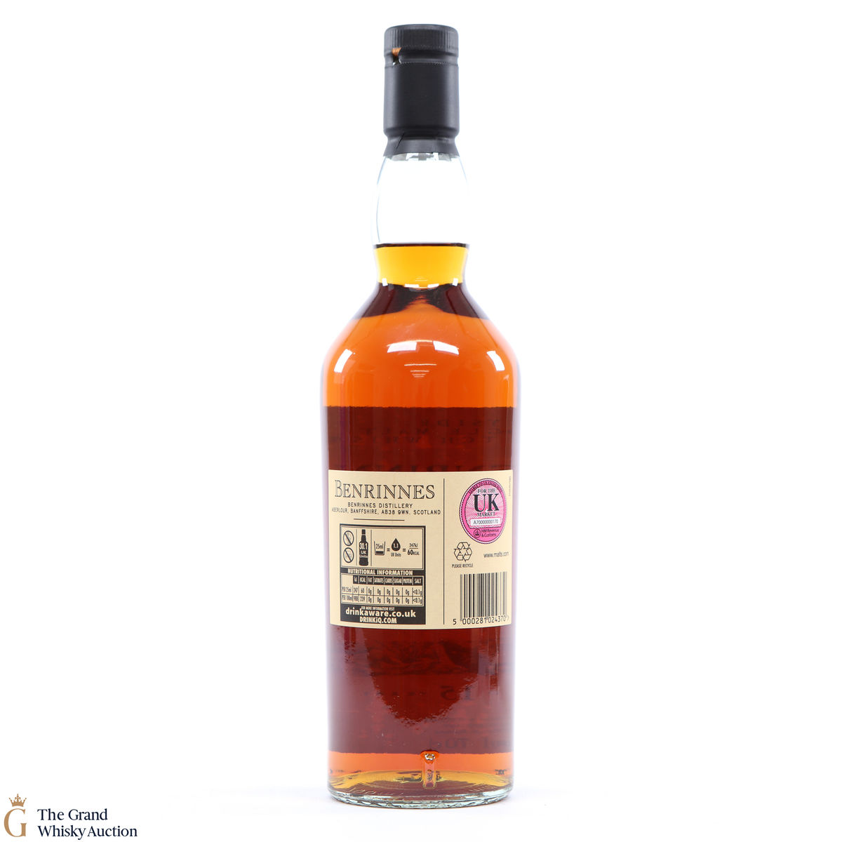 Due to the various ages of bottles and their seals, the condition of liquid is at the buyer's discretion and no claim can be lodged against failure/leakage in transit. Loss and breakage cover is available at 3% of the hammer price as standard. If the lot is not insured, no claim can be lodged against the courier or The Grand Whisky Auction for breakage or loss in transit.
