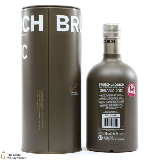 A fully organic Bruichladdich 2003 - a century ago most barley was organically grown; natural fertilisers – seaweed, peat and manure – were harnessed in a way that respected the year’s agricultural cycle. 2003 was a particularly fine harvest of Chalice barley for William rose at Culblair Farm. Supreme quality barley combined with a slow trickle-distillation to do it justice, and new oak has resulted in Bruichladdichs creamiest release yet. This is a limited edition release of 15,000 numbered bottles and Bruichladdichs first organic release - The name means 'In the Traditional Way.'