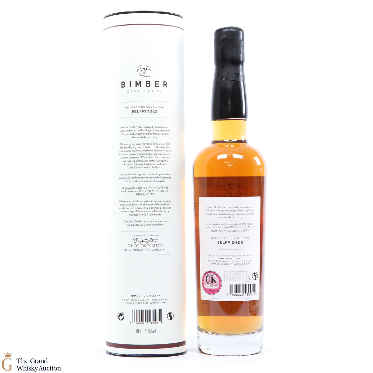 An exclusive partnership between the London distillery and department store Selfridges. This Bimber was made from single farm barley (which was malted at Westminster Maltings) and matured in four 1st fill American Oak Ex-bourbon casks. It was then finished in a single Oloroso sherry butt from hugely renowned Spanish sherry producer González Byass. Bottled in June 2020 at 51.5% ABV.