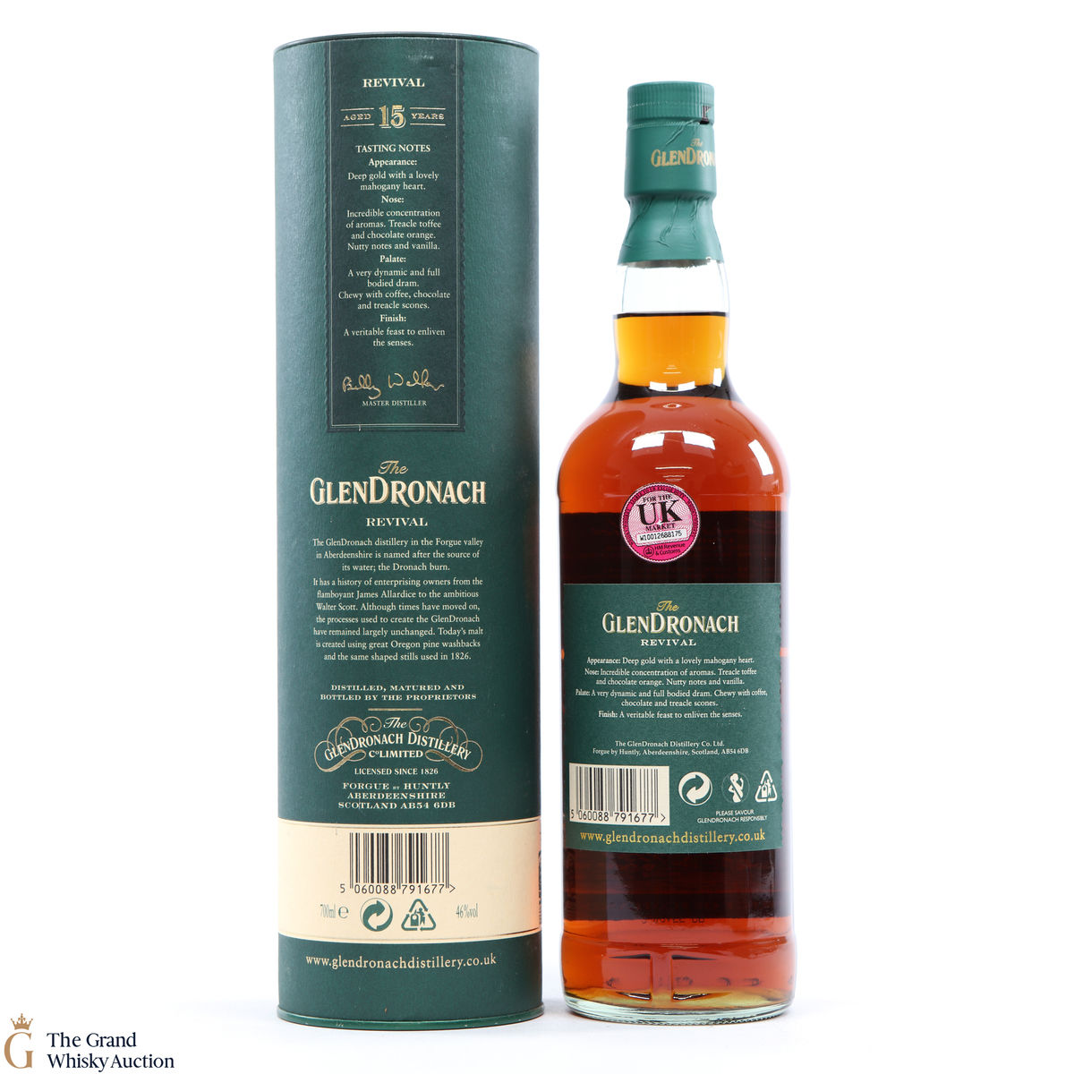 GlenDronach's 15 Year Old Revival was sadly discontinued in 2015 by the distillery due to lack of available stocks. However, stocks have been replenished and The GlenDronach 15 Year Old Revival has returned. This bottling was matured in Oloroso sherry casks.