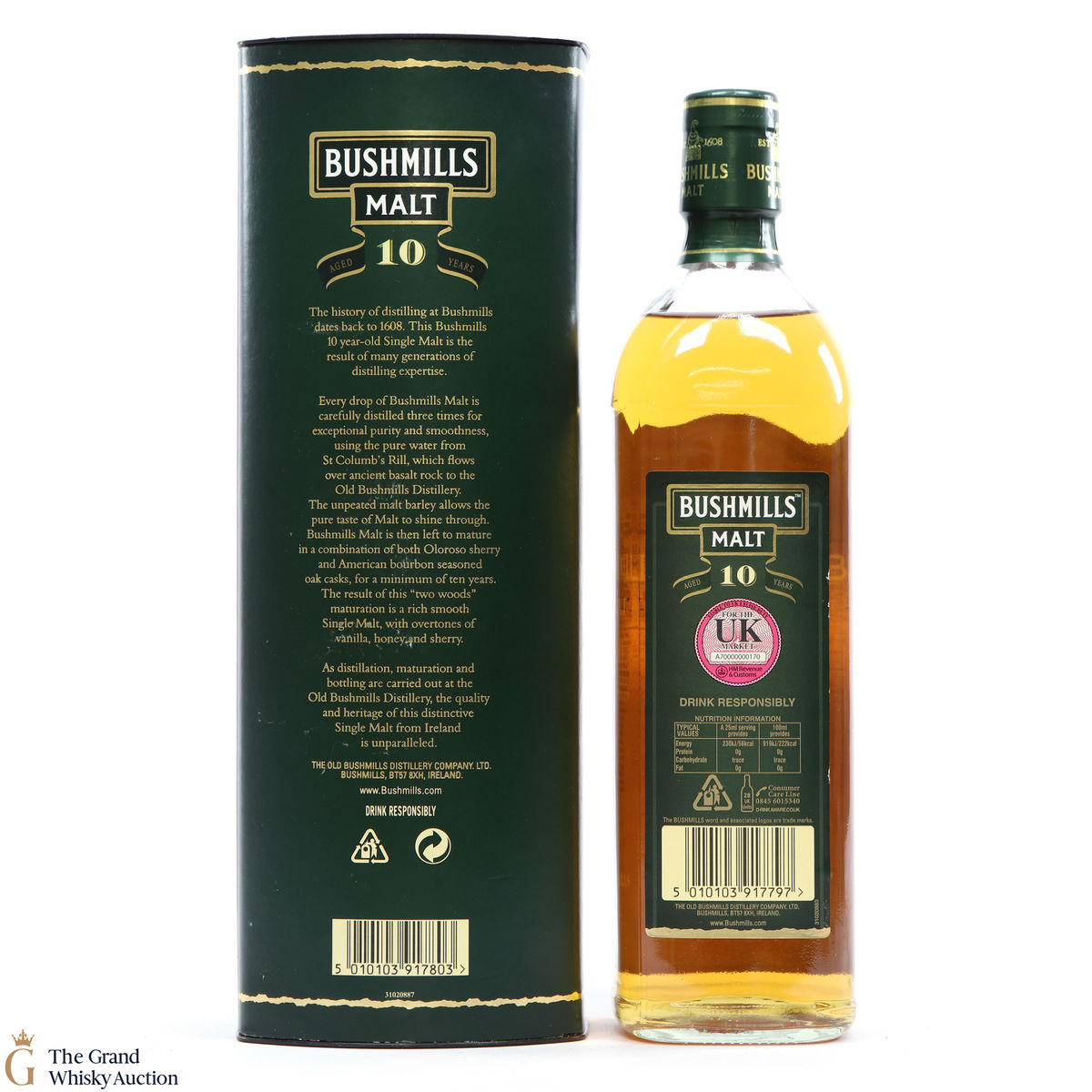 This popular Irish whiskey has been triple distilled and aged 10 years. It was matured in bourbon and oloroso sherry casks for notes of honey, vanilla and ripe fruit.