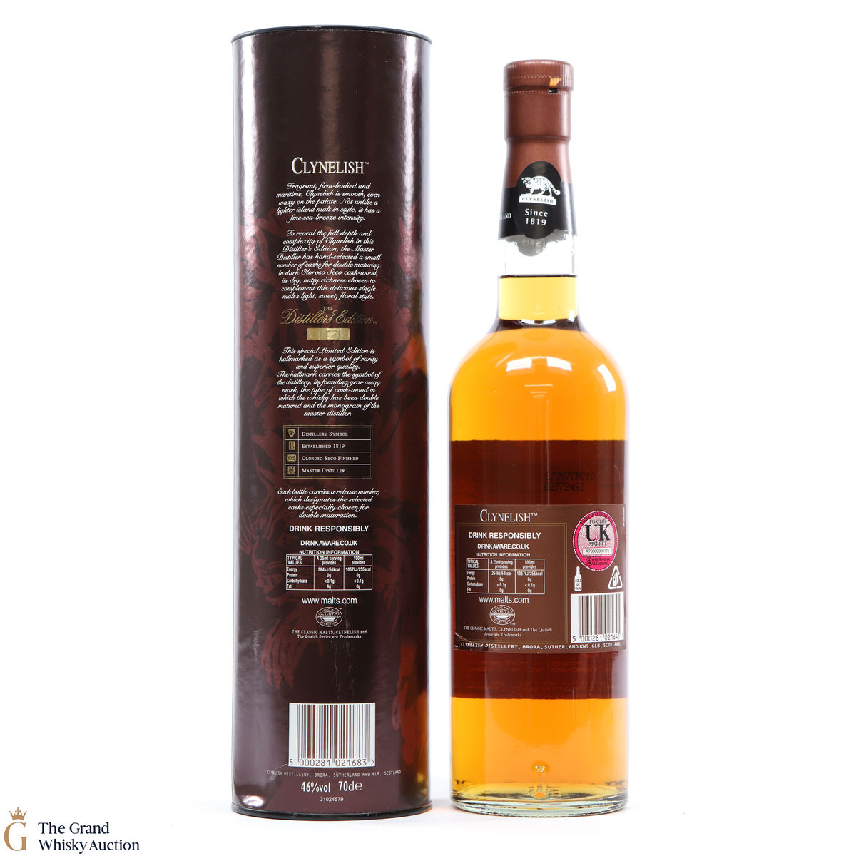 This 1992 vintage Clynelish single malt double matured in Oloroso Seco cask wood casks. Bottled in 2007 at 46% by Diageo for their Distillers Edition series. This is an early bottling in the series, a very collectable bottling.
