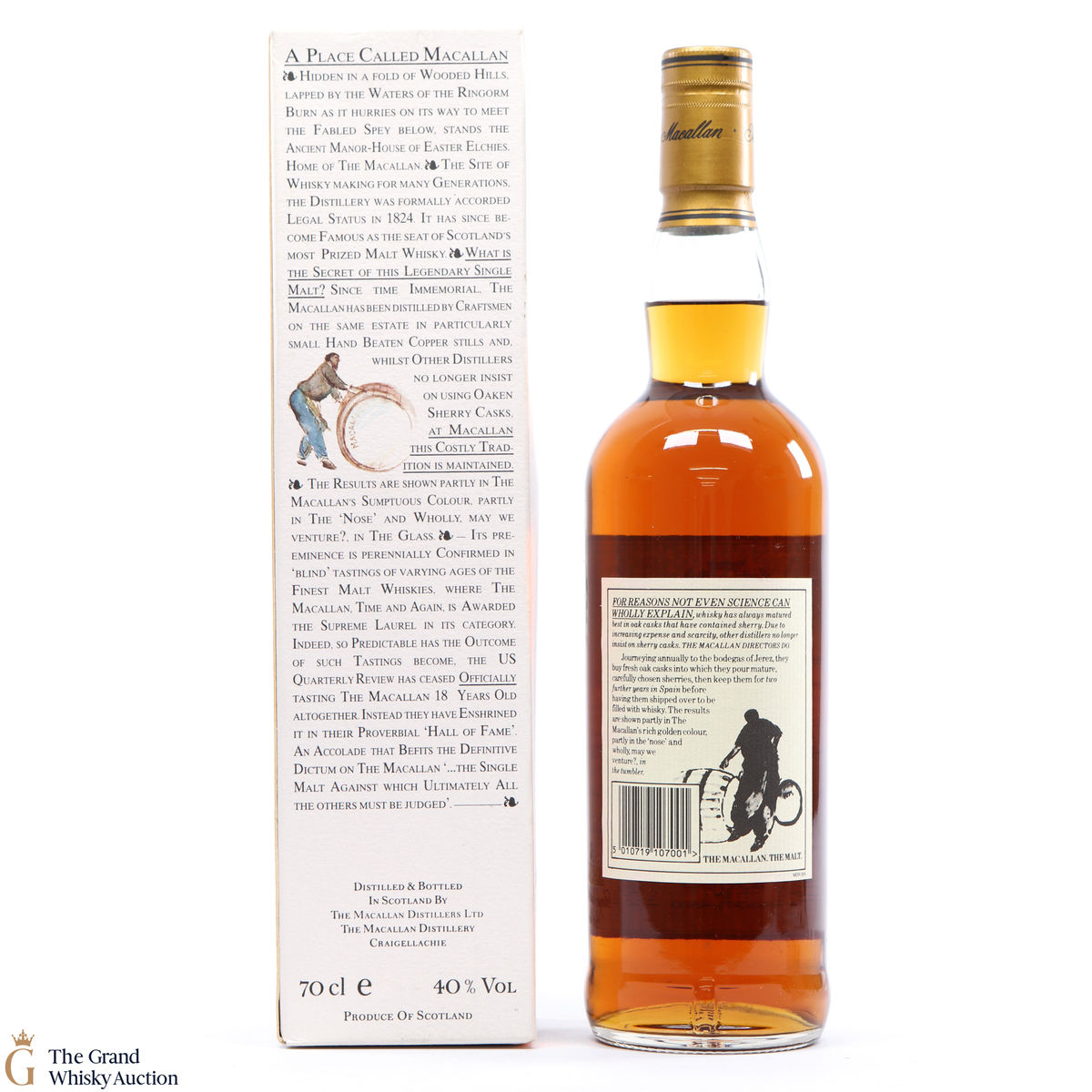 This is an old-style presentation of Macallan 10 Year old was bottled in the 1990s. This classic Speyside malt whisky matured in sherry oak casks from Jerez. Very collectable.