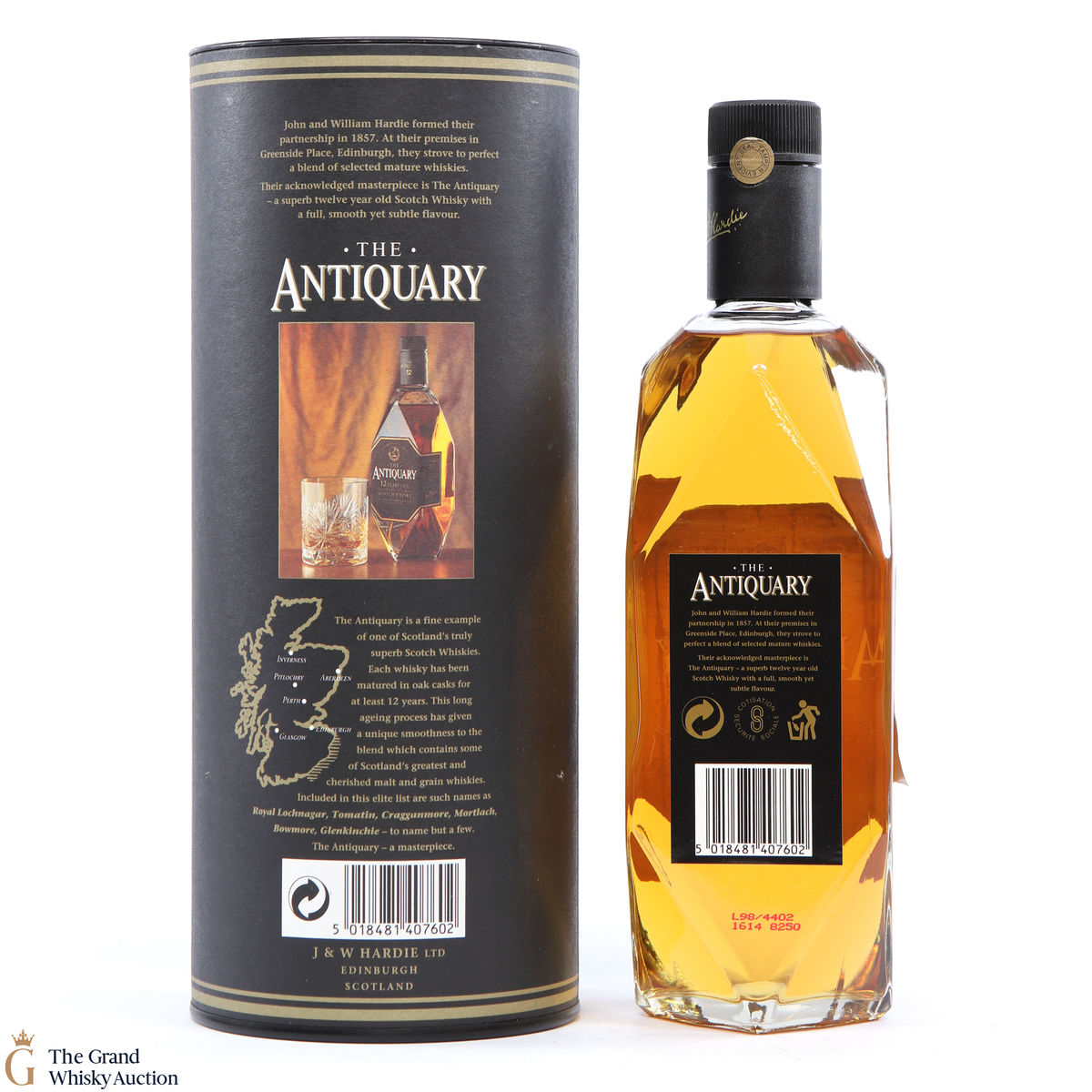 This bottling from Antiquary is a blend of some of Scotland's greatest 12-year-old malt and grain whiskies, including Royal Lochnagar, Tomatin, Cragganmore, Mortlach, Bowmore, Glenkinchie to name a few. Also, a quirky feature is that In the lid of this bottle box, there is a coaster that pops out!