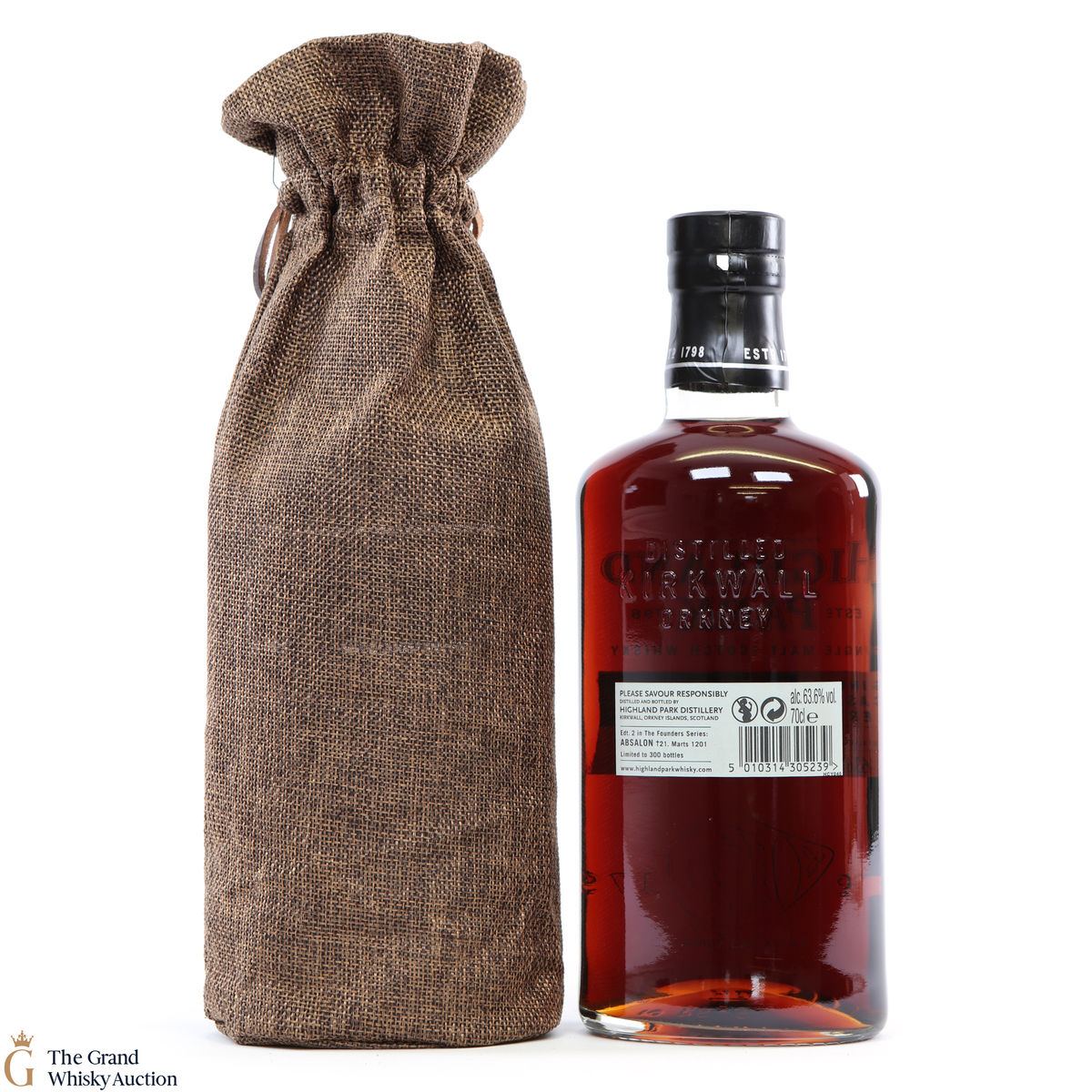 This bottling is part of Highland Park's Single Cask Series and was bottled exclusively for Absalon. This is edition 2 in The Founders Series. Distilled in 2007, this single malt was matured for 10 years in European Oak Sherry Hogshead #596 and bottled at the cask strength of 63.6% ABV. With only 300 bottles available, this is a limited edition.