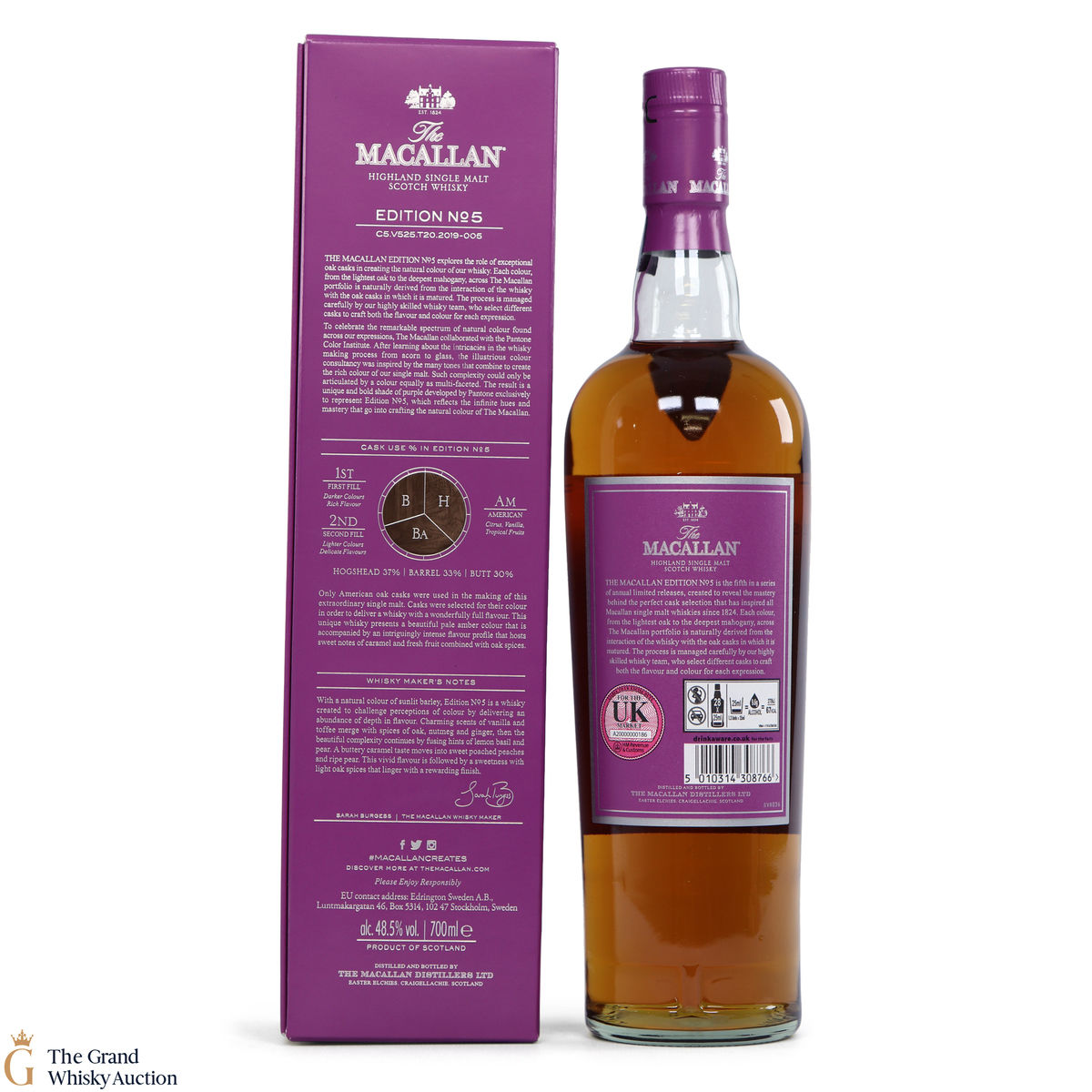 The fifth release in the Edition Series from The Macallan, The Macallan Edition No. 5 celebrates The Macallan’s extensive natural colour spectrum and the intricate whisky-making process, in partnership with masters at the Pantone Color Institute™ to create a unique shade of purple that features on the packaging.