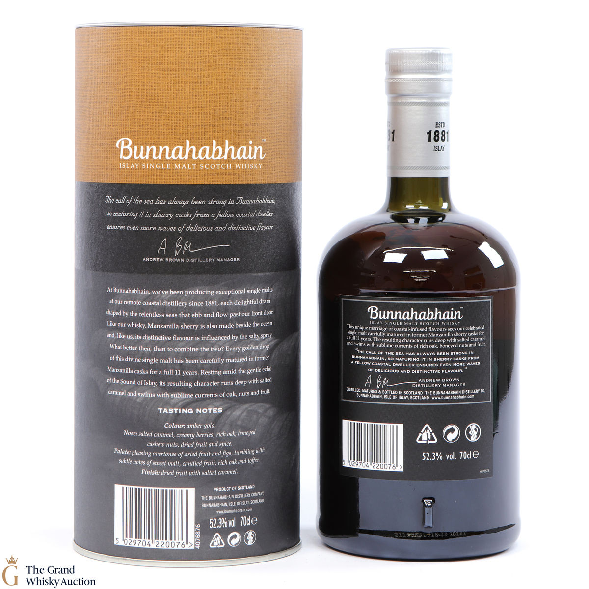 This limited release from Bunnahabhain and is a 2008 vintage Manzanilla cask matured single malt. Bottled in May 2020 at 52.3%. This 11-Year-Old, matured in warehouse 9 has rich flavours of nuts, fruits and toffee, with a salted caramel finish.