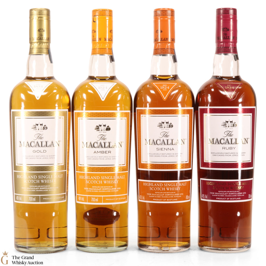 This lot contains 4 x 70 cl, Gold, Amber, Sienna & Ruby