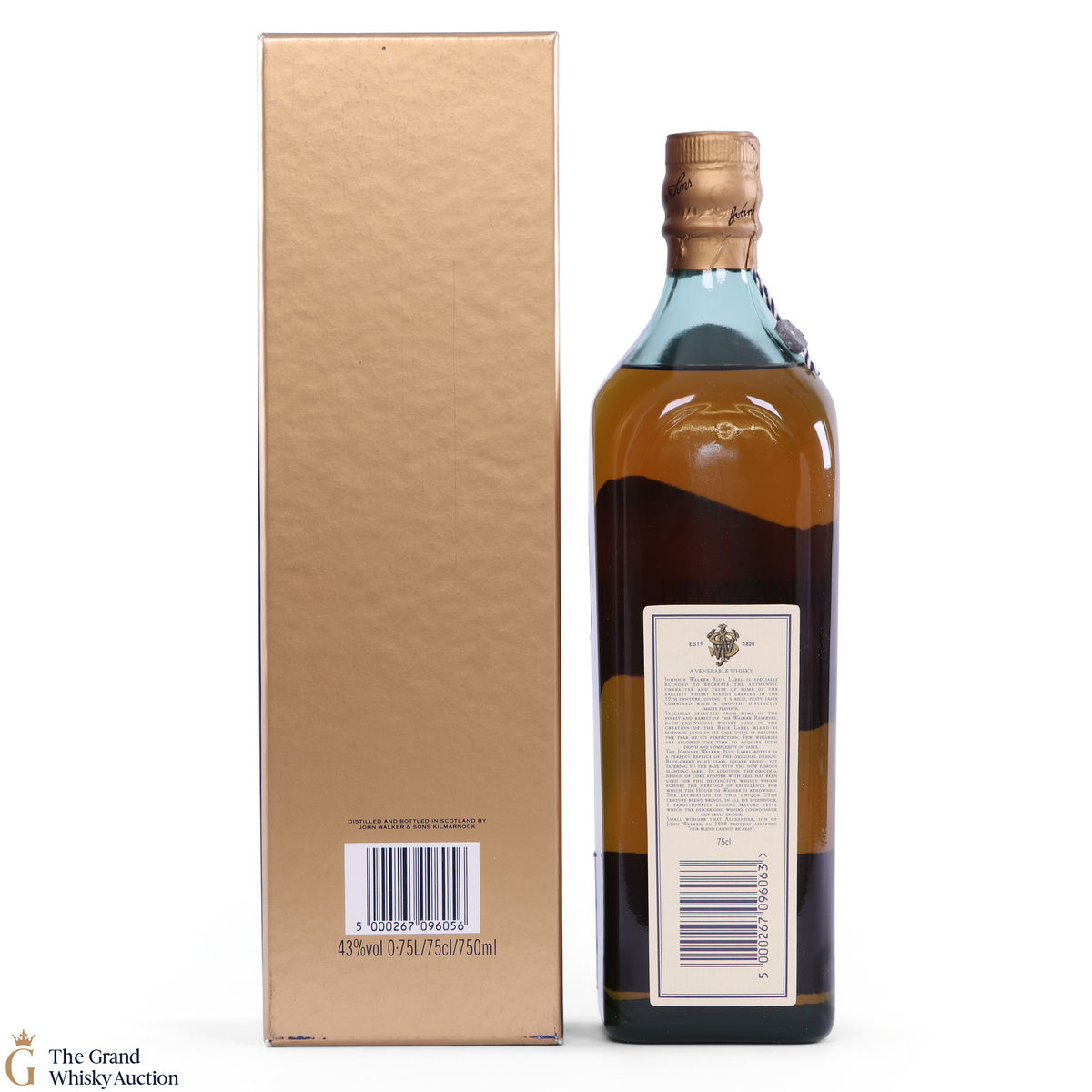 An older, and now very rare, bottling of Johnie Walker Blue Label.