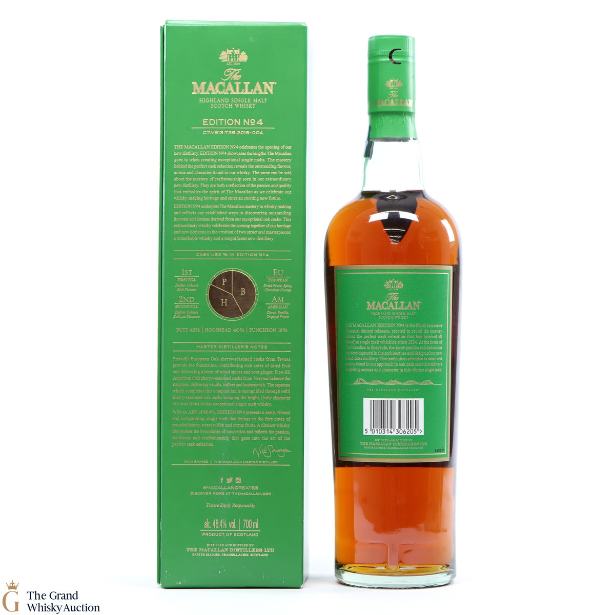 The fourth release in the Edition Series from The Macallan, this Speyside single malt is a celebration of the distillery's whisky making heritage, combining a unique selection of oak cask styles. Edition No.4 reflects the craftsmanship and pioneering design of the new Macallan distillery.