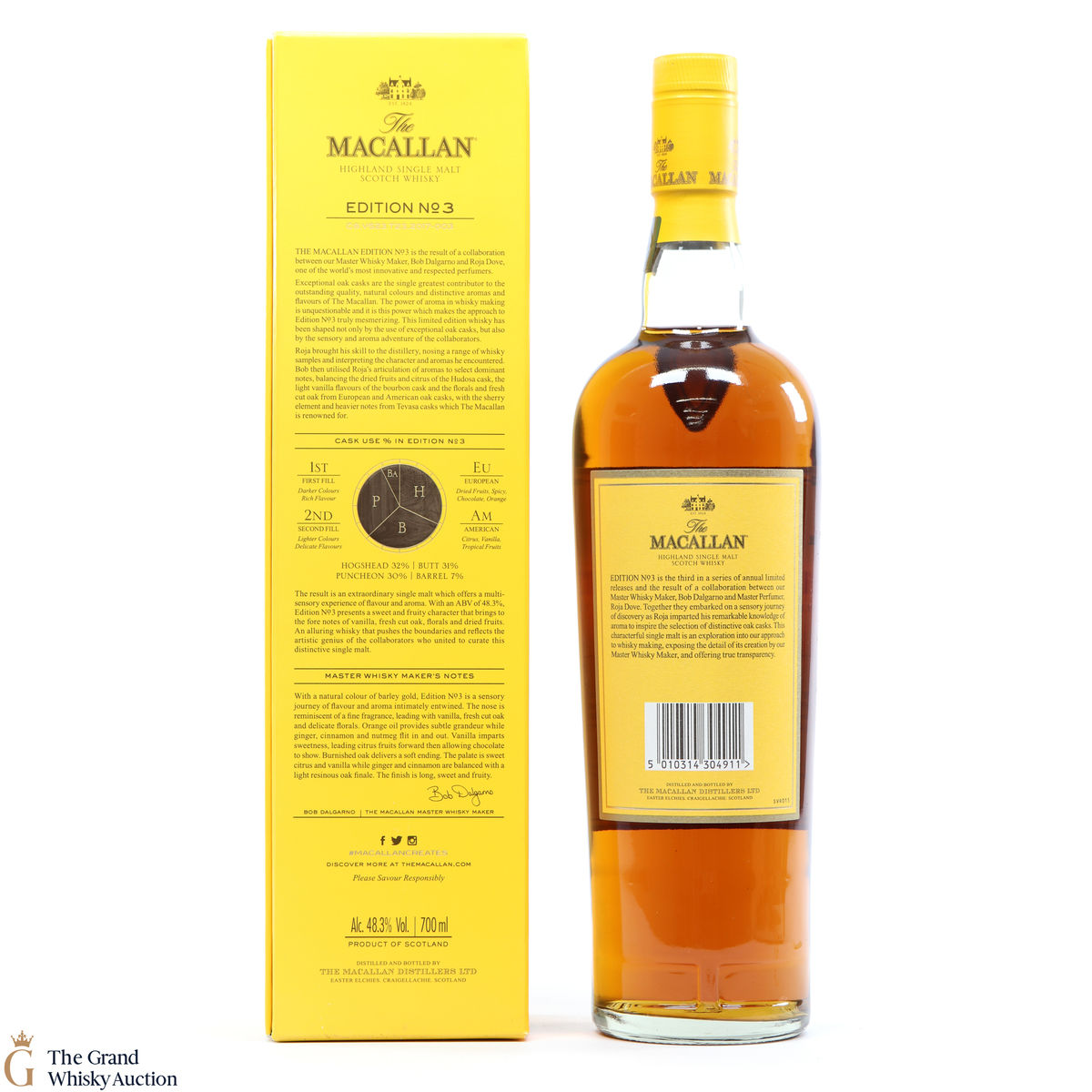 Edition No.3 was a collaboration between master perfumer Roja Dove and master whisky maker Bob Dalgarno. With Dove's remarkable sensory knowledge, Dalgarno shaped the character of Edition No.3 from a combination of European and American oak casks to create a deliciously sweet, single malt with floral notes.