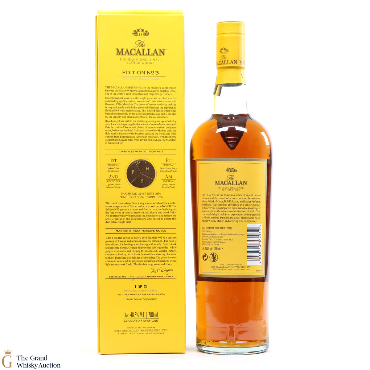 Edition No.3 was a collaboration between master perfumer Roja Dove and master whisky maker Bob Dalgarno. With Dove's remarkable sensory knowledge, Dalgarno shaped the character of Edition No.3 from a combination of European and American oak casks to create a deliciously sweet, single malt with floral notes.