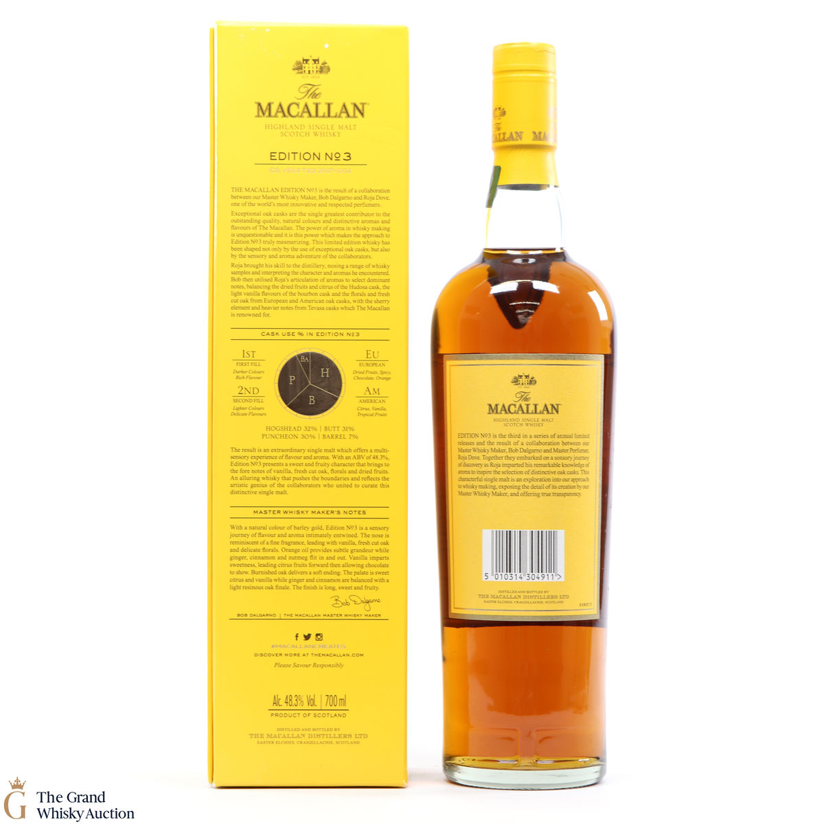 Edition No.3 was a collaboration between master perfumer Roja Dove and master whisky maker Bob Dalgarno. With Dove's remarkable sensory knowledge, Dalgarno shaped the character of Edition No.3 from a combination of European and American oak casks to create a deliciously sweet, single malt with floral notes.
