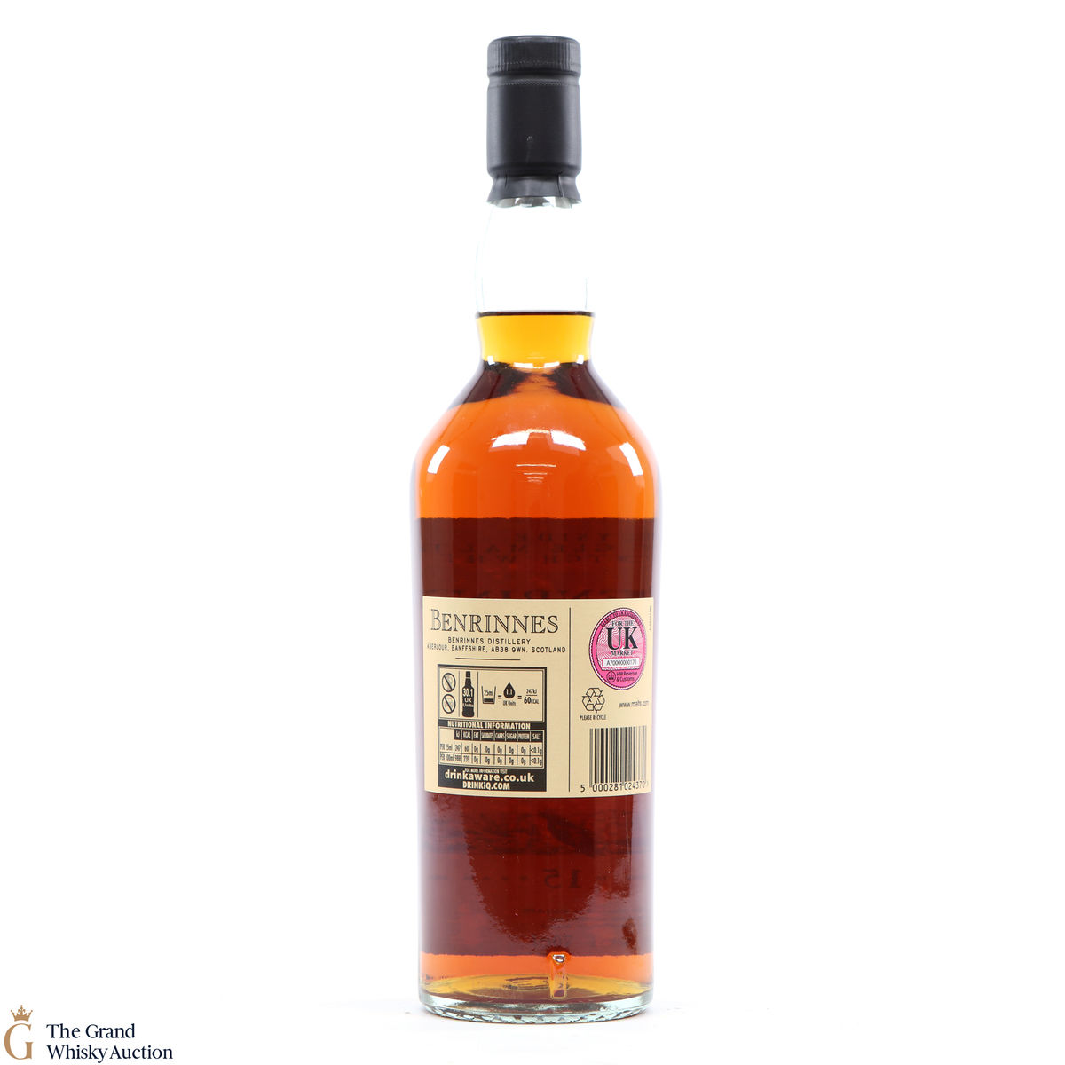 Due to the various ages of bottles and their seals, the condition of liquid is at the buyer's discretion and no claim can be lodged against failure/leakage in transit. Loss and breakage cover is available at 3% of the hammer price as standard. If the lot is not insured, no claim can be lodged against the courier or The Grand Whisky Auction for breakage or loss in transit.