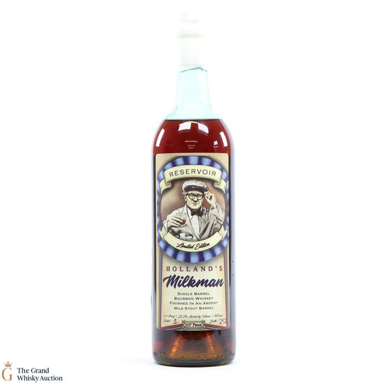 This bottle of Holland's Milkman is a homemade small batch bourbon whisky was made by adding a dairy twist to the recipe. It has been finished in Arden milk stout barrels.