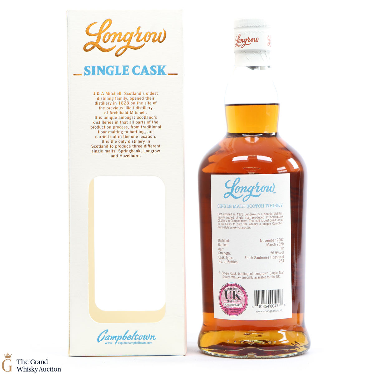 This Longrow is limited single cask release. Distilled in November 2007 it was matured for 12 years in Fresh Sauternes Hogshead casks and bottled in March 2020 at 56.9%. This is one of only 264 bottles, exclusively released for the UK market.
