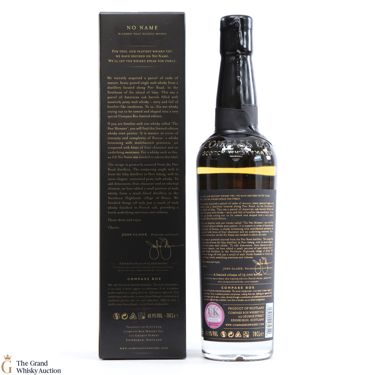 No Name is a limited edition blend by Compass Box, No Name released in 2017. This expression was said to be there peatiest whisky yet, made up with Ardbeg, and caol ila , as well as older malt Clynelish, matured in french oak casks.
