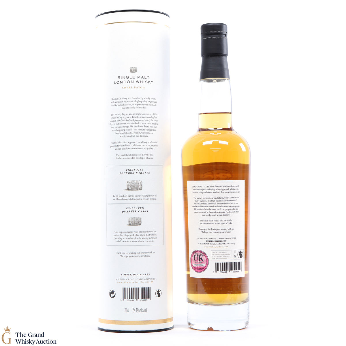 One of only 1750 bottles in the Bimber Peated Cask Batch 1 Small Batch release. It was firstly matured in 1st fill bourbon barrels then finished in casks that previously held Ex-peated Quarter Casks to finish.