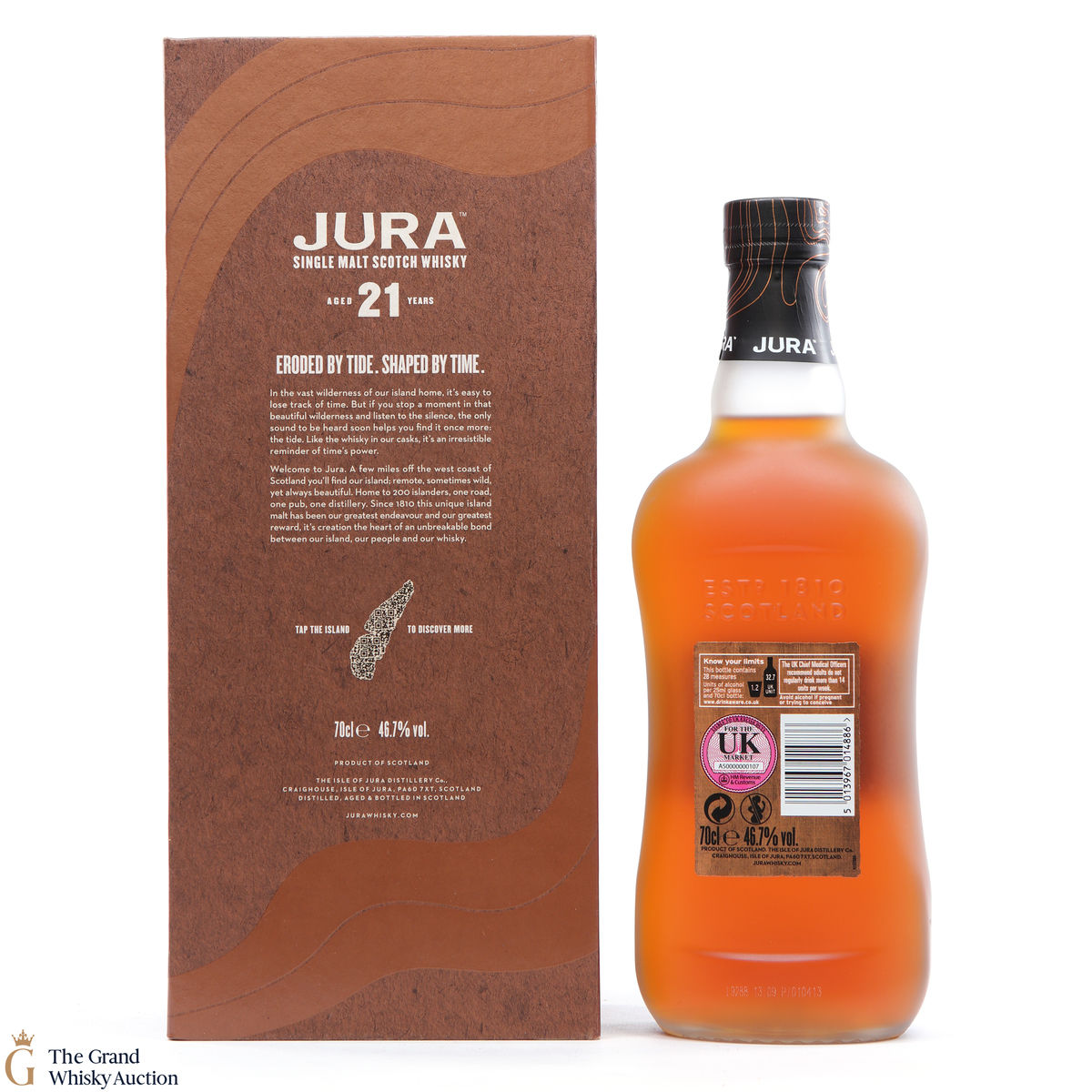 Matured for 21 years in ex-bourbon barrels this bottle 'Tide' by Jura was then finished in hand selected virgin American white Oak Casks before being bottled.