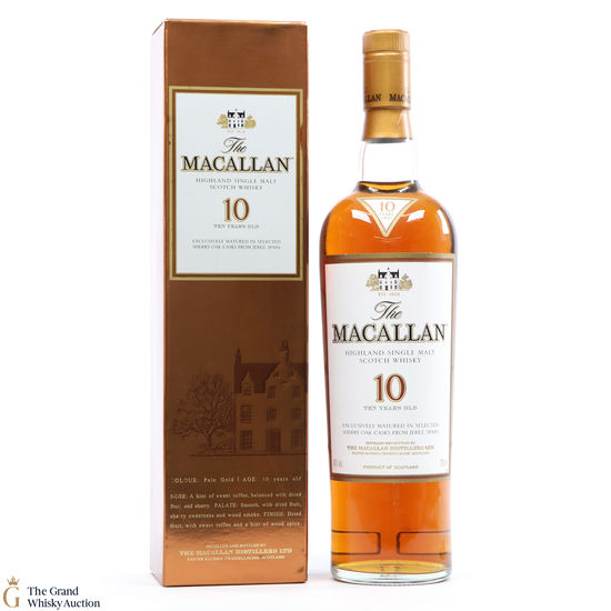 A 10 year old single malt from The Macallan Distillery. It has been exclusively matured in selected sherry oak casks from Jerez, Spain.