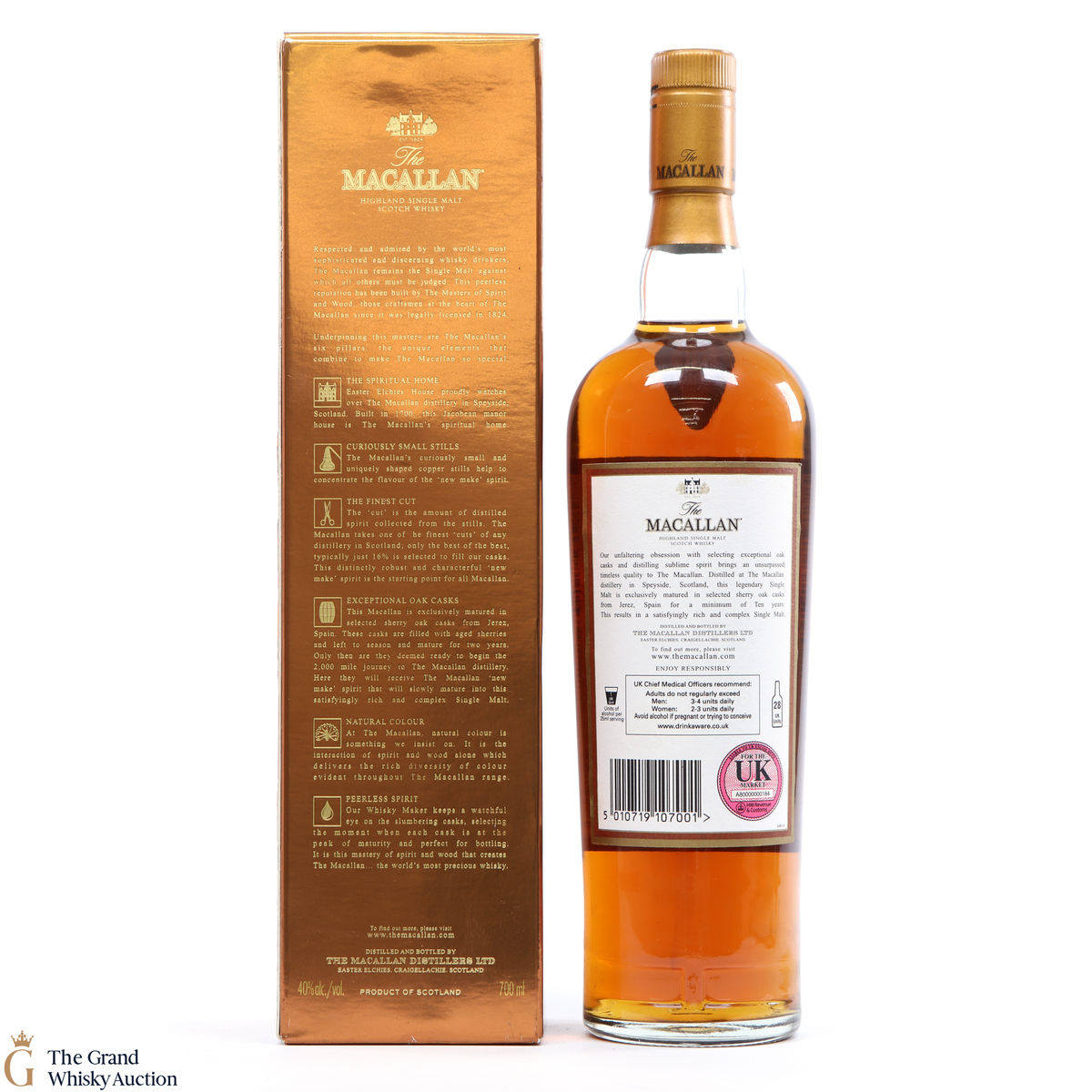 A 10 year old single malt from The Macallan Distillery. It has been exclusively matured in selected sherry oak casks from Jerez, Spain.