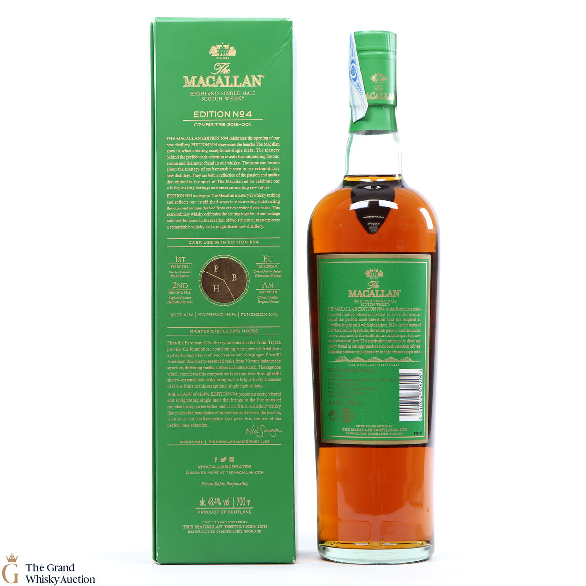 The fourth release in the Edition Series from The Macallan, this Speyside single malt is a celebration of the distillery's whisky making heritage, combining a unique selection of oak cask styles. Edition No.4 reflects the craftsmanship and pioneering design of the new Macallan distillery.