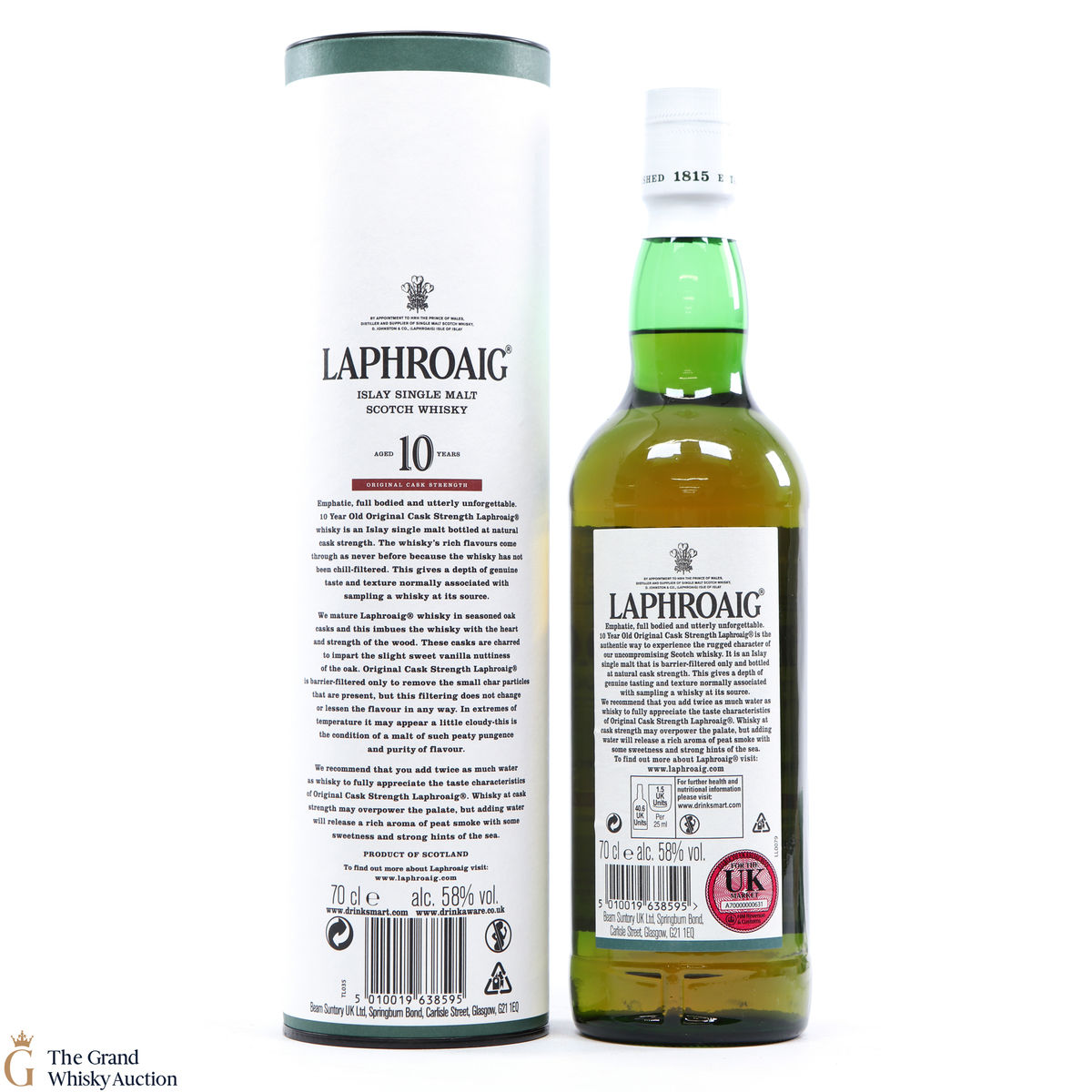 This original cask strength bottling of the medicinal 10 year old from Islay's bestselling distillery, Laphroaig. In making Laphroaig, malted barley is dried over a peat fire. The smoke from this peat, found only on Islay, gives Laphroaig its particularly rich flavour.