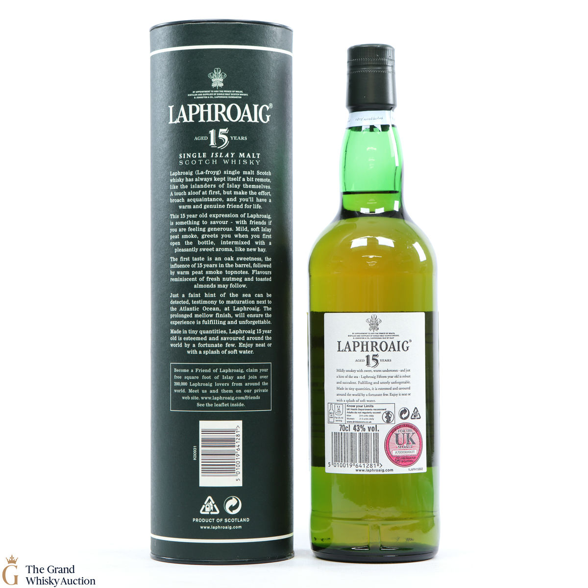 A smart old bottle of Laphroaig, bottled in the mid to late 1990s, after the award of the Royal Warrant in 1994. Laphroaig 15 Year Old is smoother than the robust 10-year-old.
