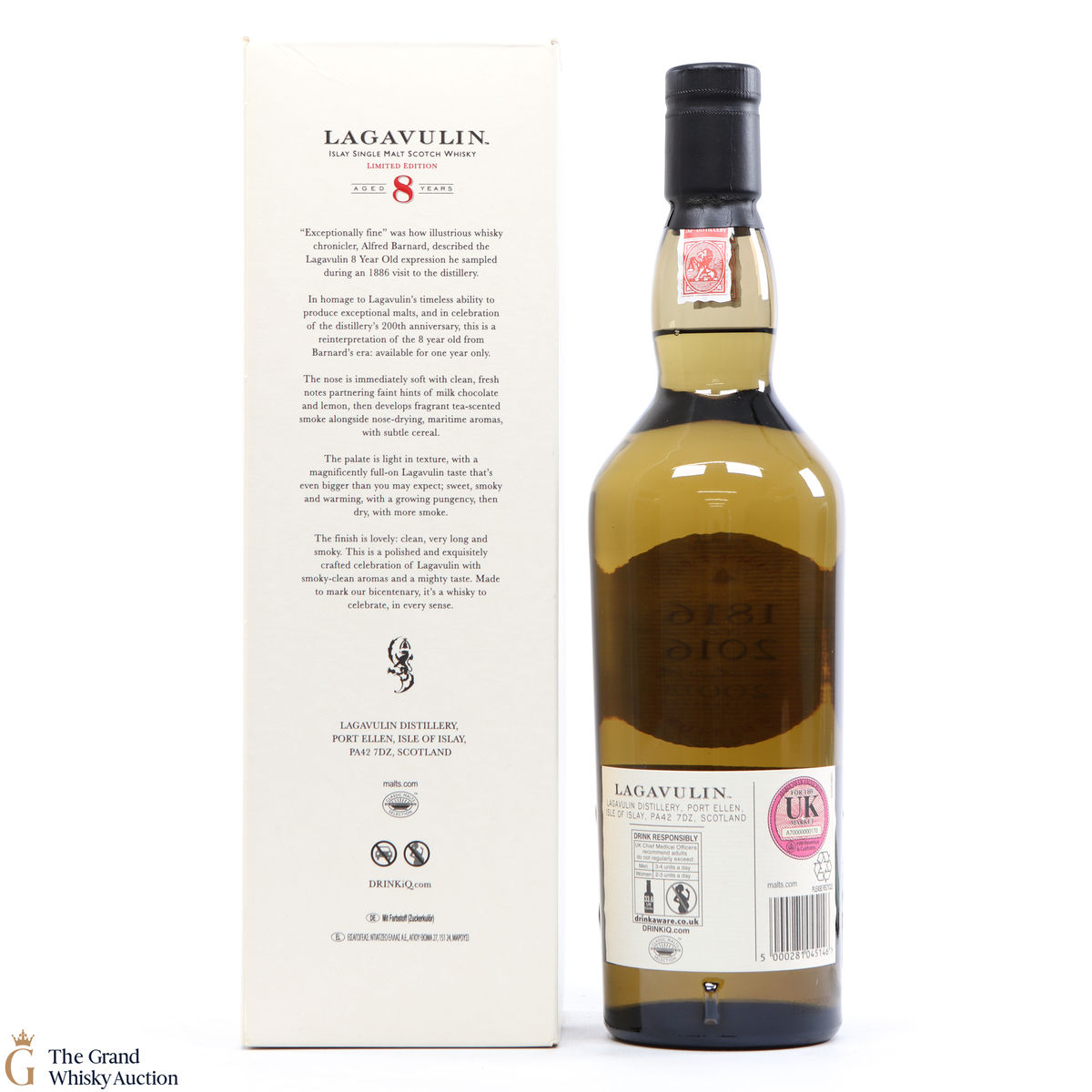 This 8 year old was released in 2016 to commemorate the 200th anniversary of the founding of Lagavulin distillery by John Johnston in 1816. This single malt is smoky, with underlying sweet spice. It was inspired by the visit of Alfred Barnard to the distillery in the 1880s when he tried an 'exceptionally fine' eight-year-old from the distillery, making this a very fitting tribute for the milestone occasion.