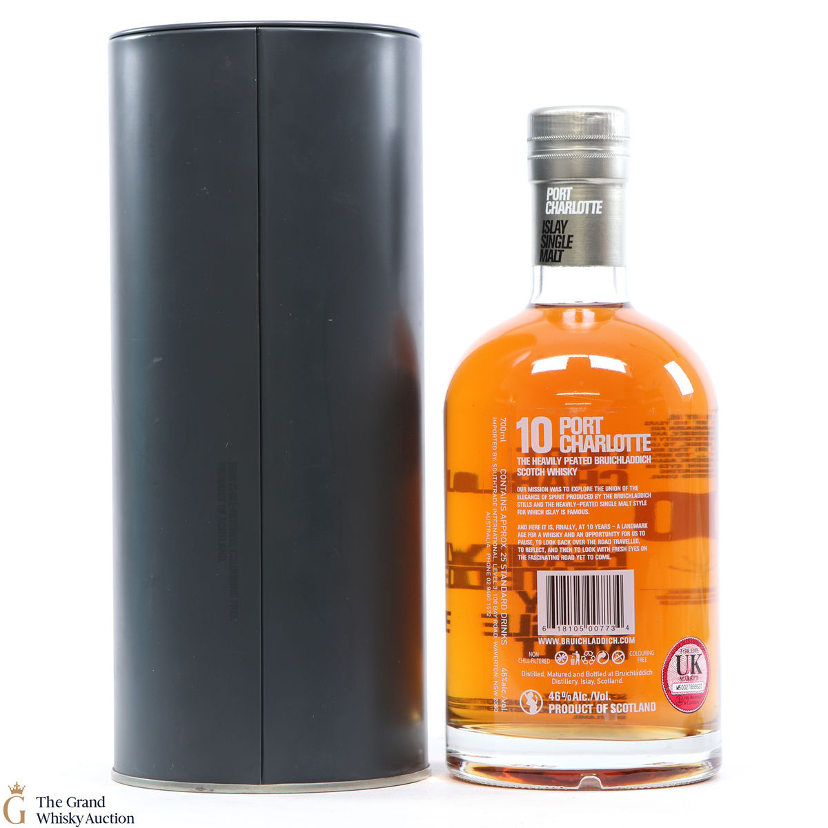 The Port Charlotte 10 Year Old whisky is produced in tall, narrow-necked spirit stills. This creates a lot of reflux and maximizes the amount of copper contact that the vapour receives. The result is a smooth, silky whisky, with noticeable floral elements. Following distillation, the new-make spirit is matured in a combination of first fill ex-bourbon casks (65%), second fill bourbon casks (10%) and second fill French wine casks from Bordeaux (25%). The whisky is bottled on site. Neither chill filtering or caramel is used.