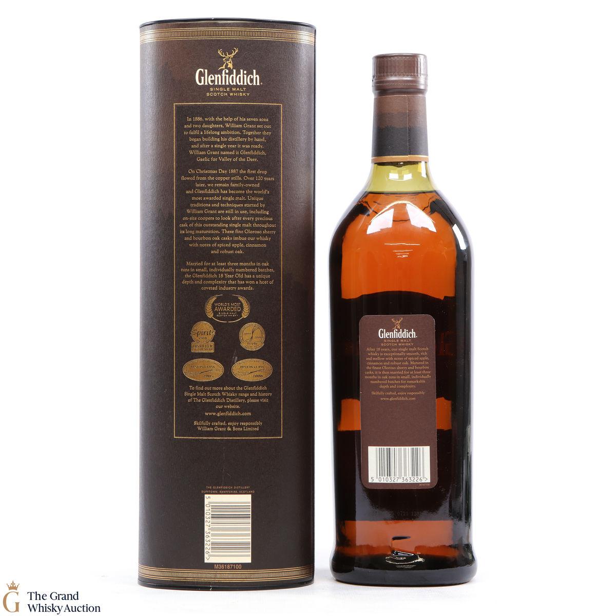 Matured in small batches the Glenfiddich 18 is arguably the most complex in the core range. the single malt has been matured in oloroso sherry and bourbon casks. It is very fragrant with tropical fruit and sherry cask influences, rich baked apple and cinnamon spice compliments by robust oak notes.