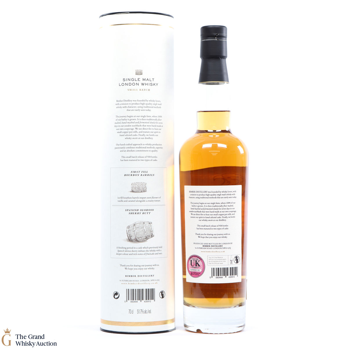 One of only 920 bottles in the Bimber Oloroso Sherry Batch 2 Small Batch release. It was carefully crafted from a vatting of first-fill ex-bourbon casks that were finished in Spanish oloroso sherry. It offers a silky texture with a distinctive fruit-focussed character and layers of rich, sweet intensity.