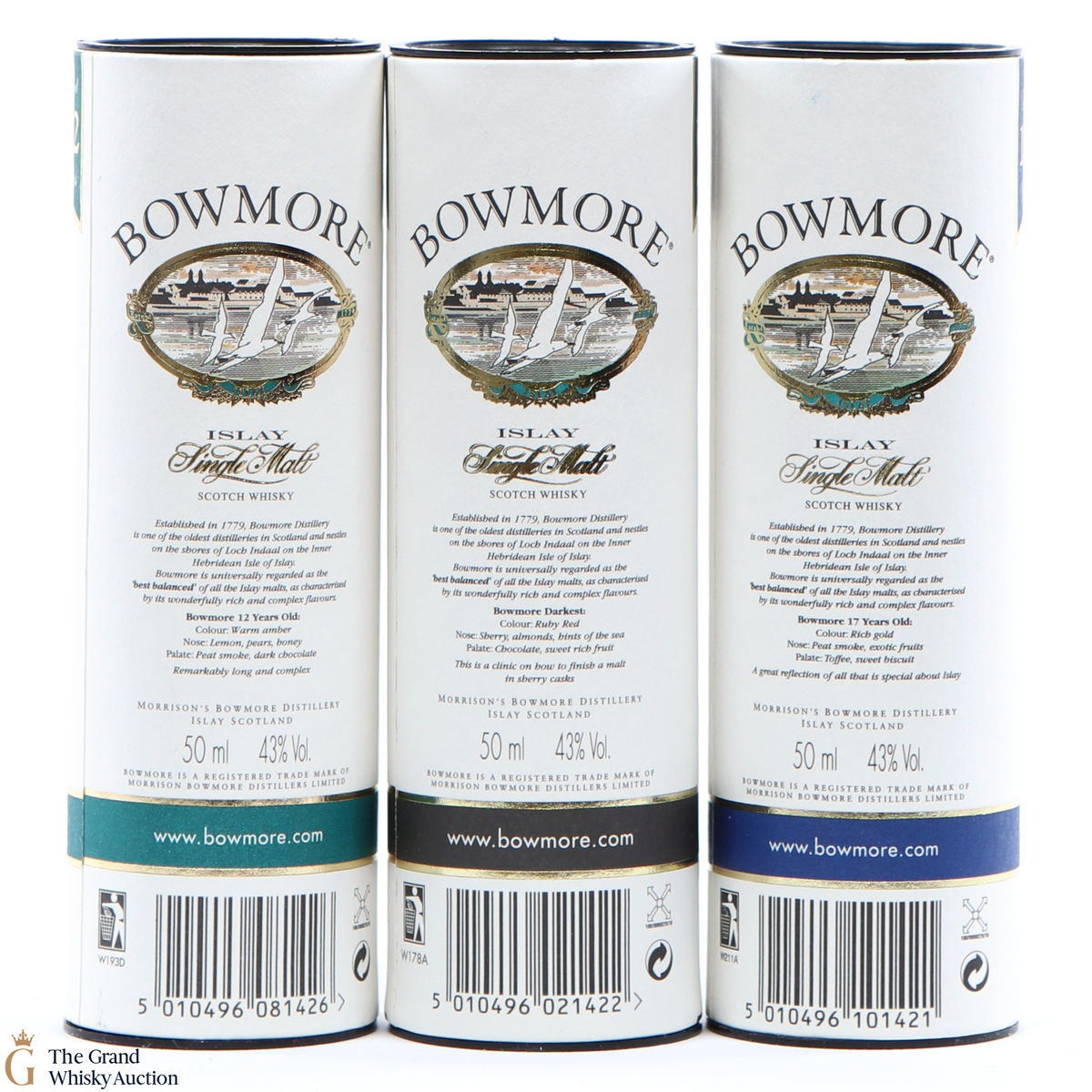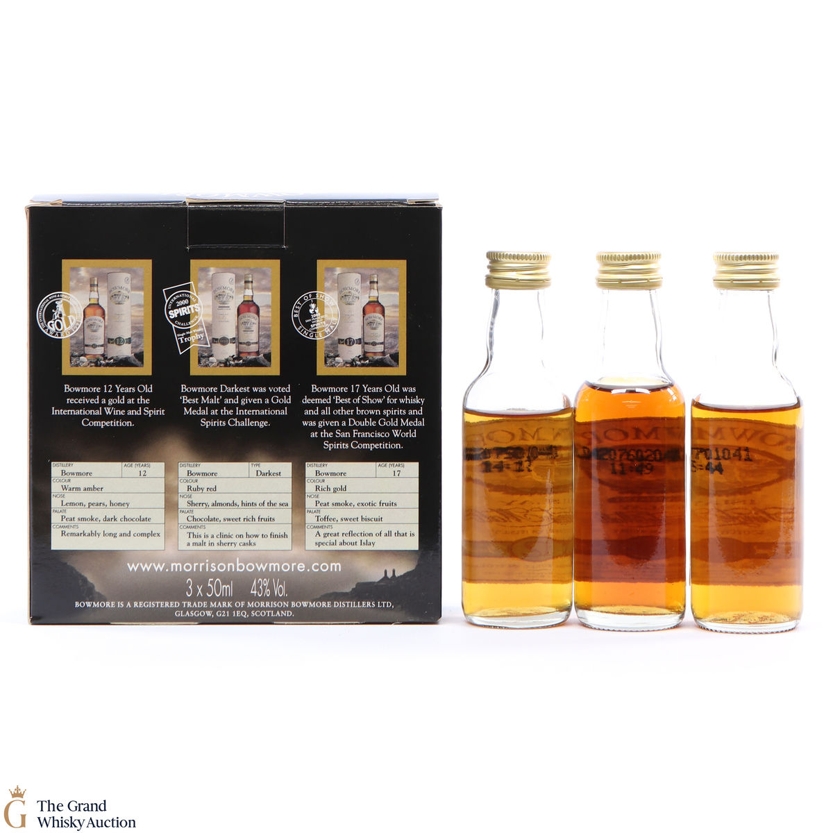 A chance to sample three of the wonders Bowmore offer. This Bowmore gift pack contains miniature bottles of the 12, Darkest and 17-year-old expressions.