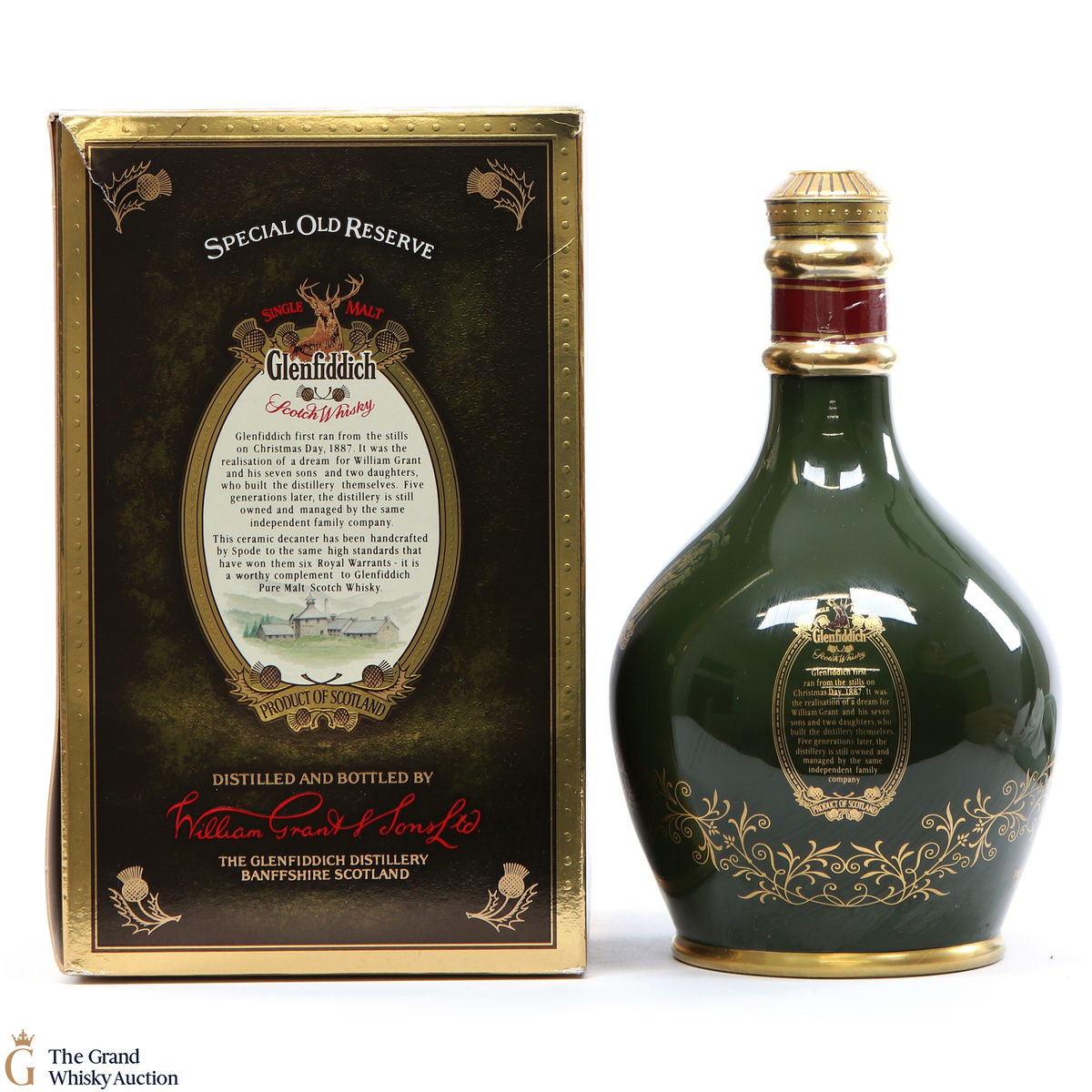 This whisky has been reserved by the distillery and has been aged in Oak casks. A classic decanter containing pure malt from Glenfiddich, produced by Spode.